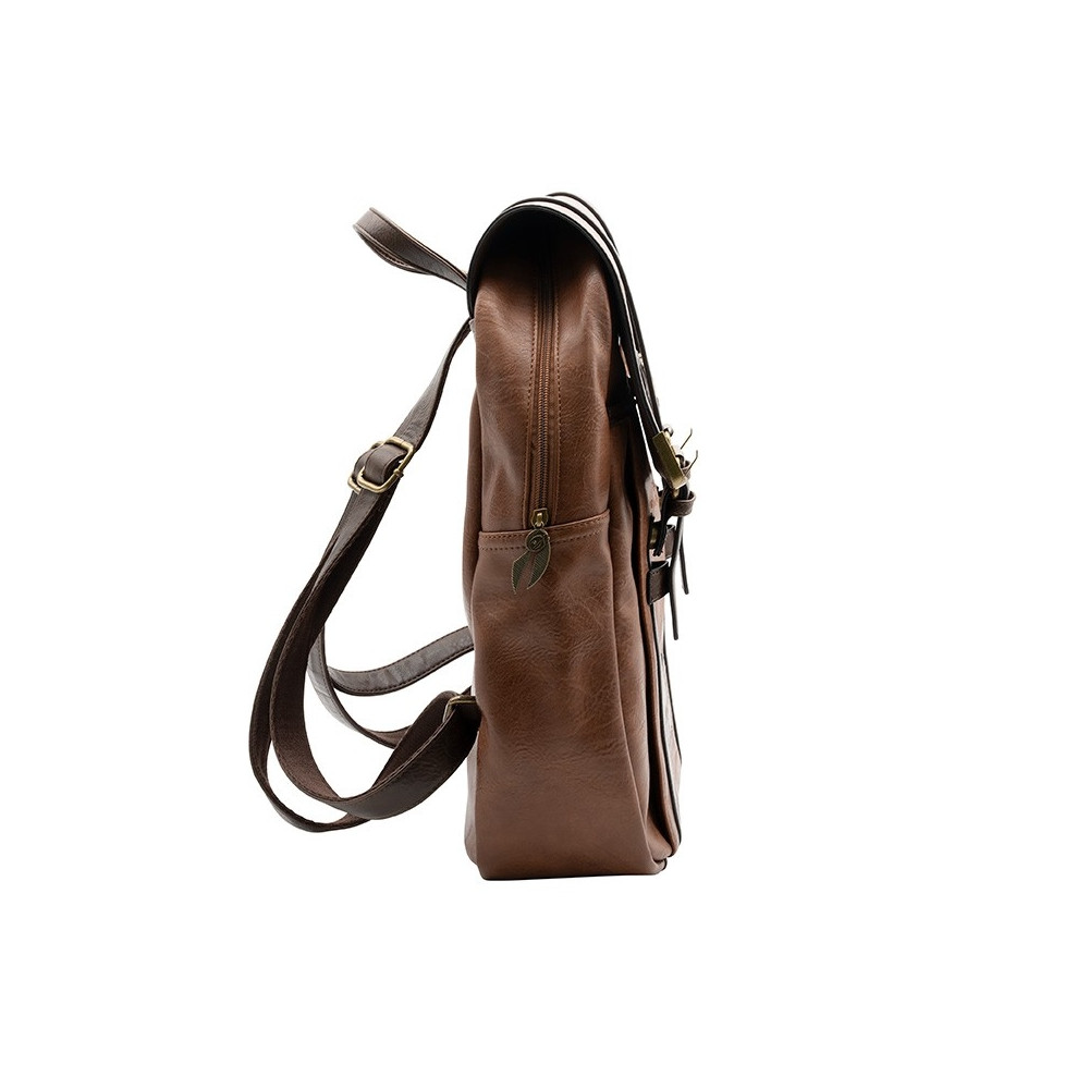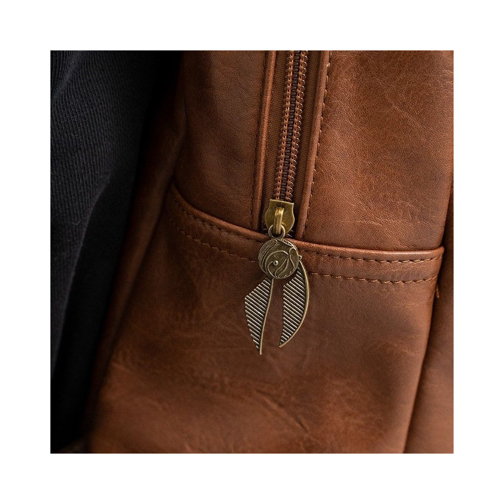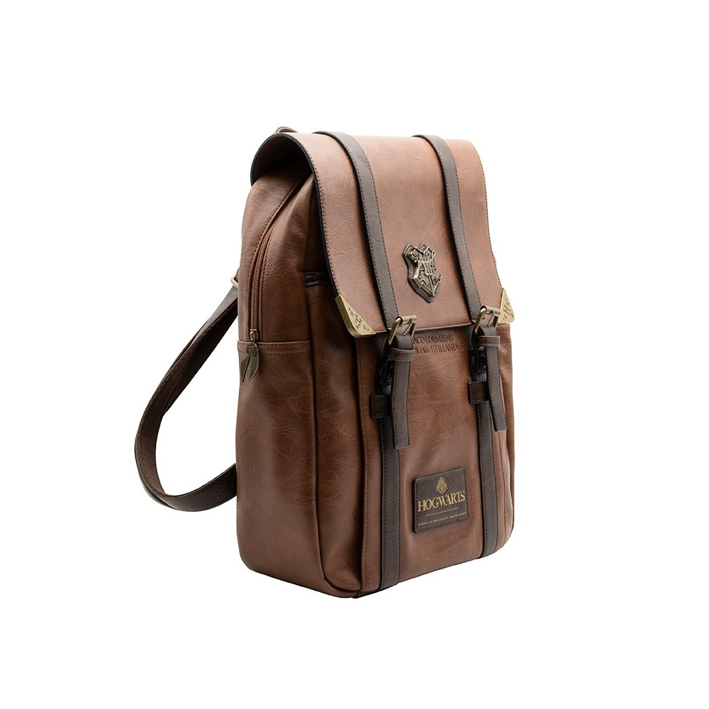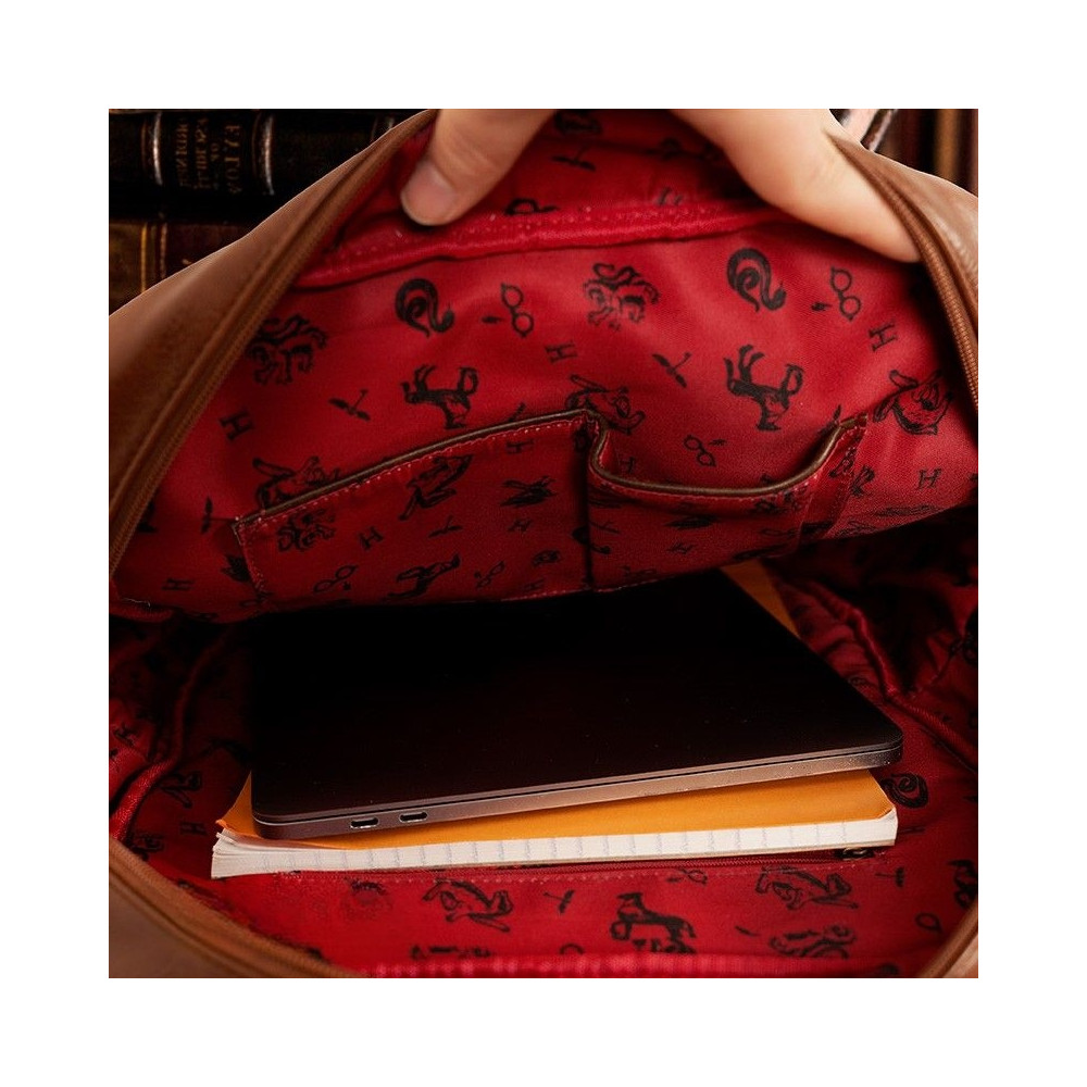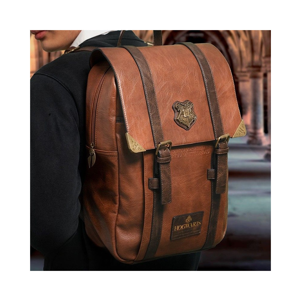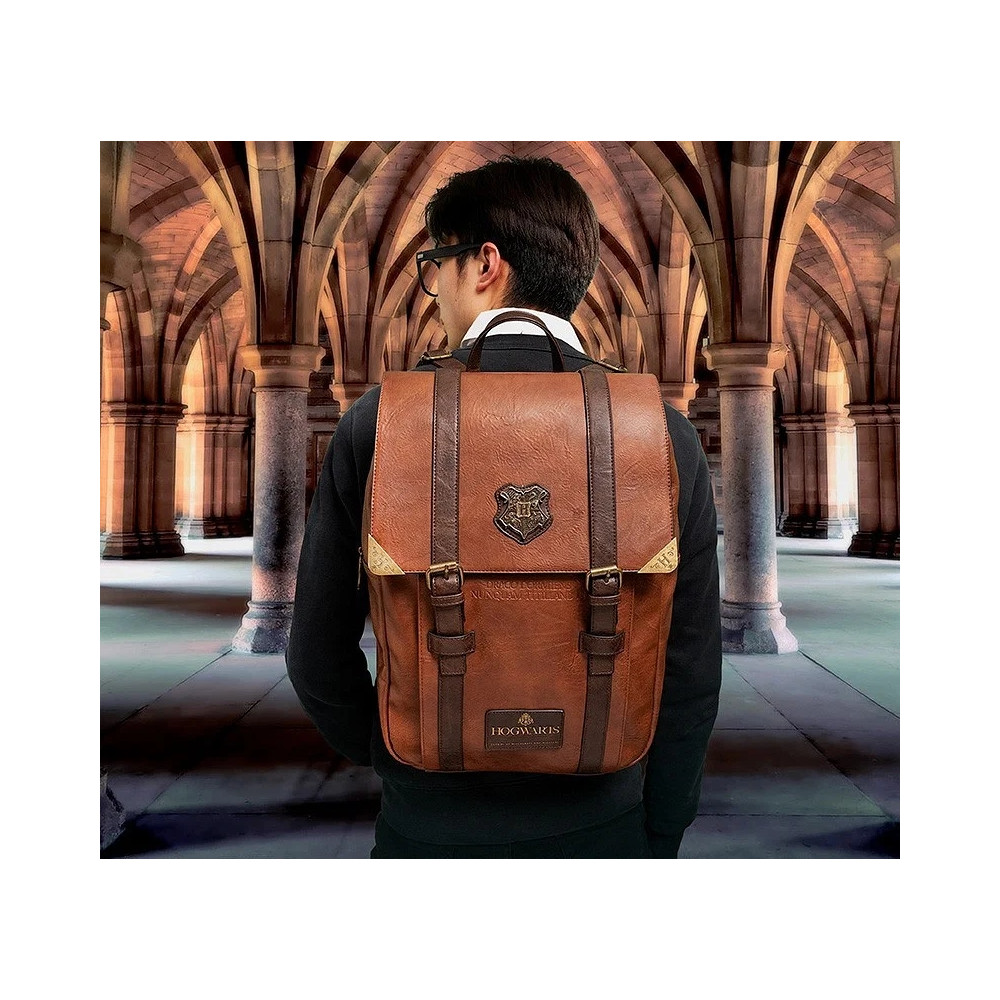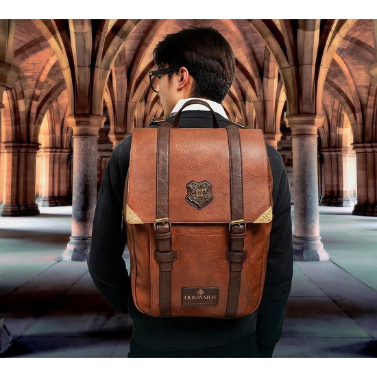 Batoh je vyroben z kvalitní umělé kůže v hnědém vintage stylu a zdoben precizně vyraženým erbem Bradavic. Skvěle poslouží jako praktický módní doplněk pro každodenní použití do školy, práce i na výlety.