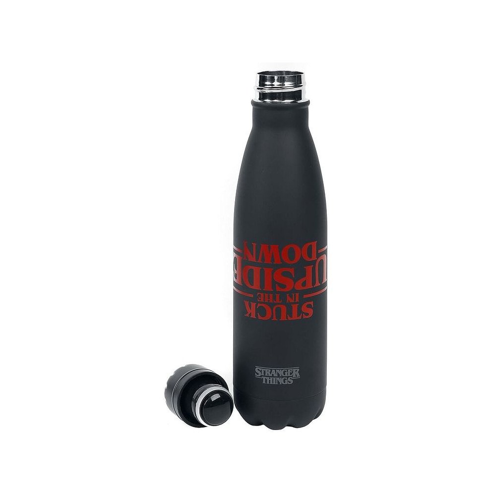 Stylová černá láhev Stranger Things s nápisem „Stuck in the Upside Down“ je ideální pro fanoušky seriálu – odolná, praktická a vždy připravená na dobrodružství.