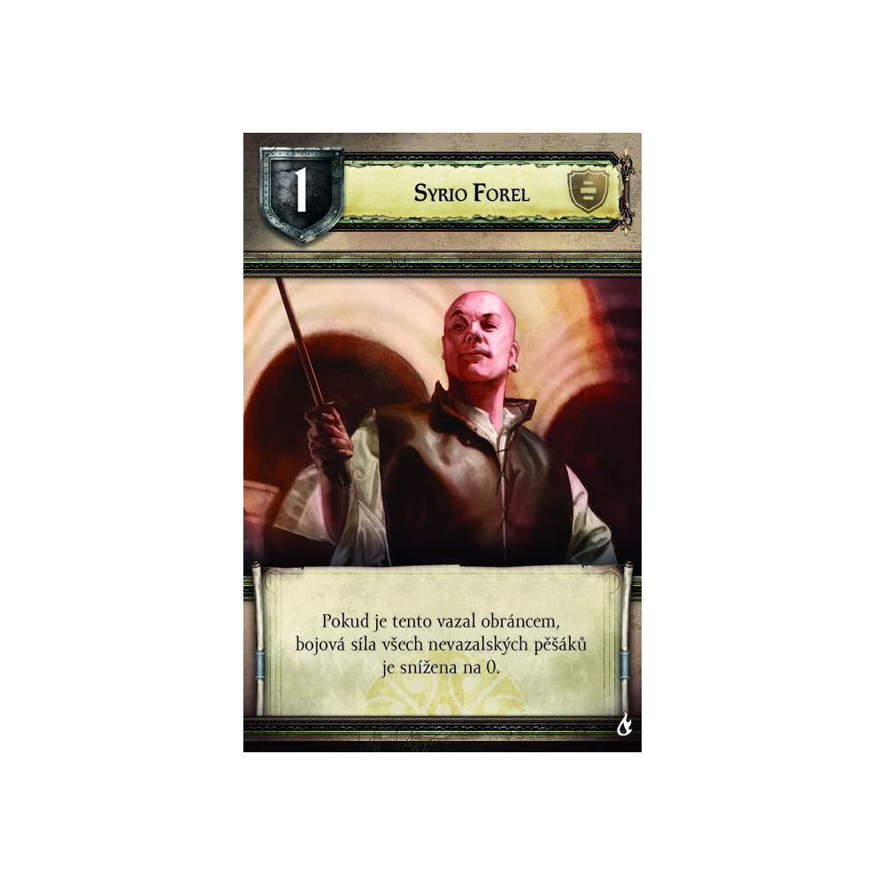 Obsah balení: 2 nové hratelné rody, 45 plastových jednotek, 3 plastové jednotky draků, 1 velký herní plán Essosu, 12 karet půjček Železné banky, 24 žetonů námořních rozkazů, 10 nových karet západozemí, 1 balíček rodových karet vazala, 7 karet připravy hry vazala, 15 žetonů zvelebení oblasti