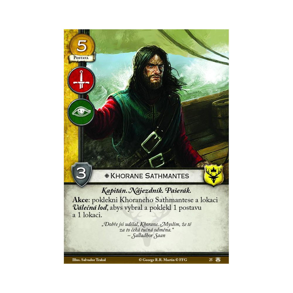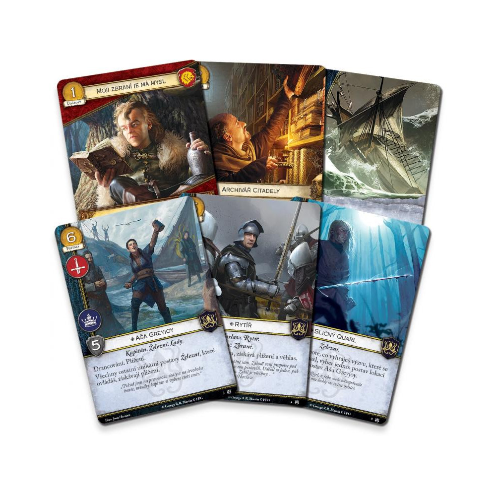Deluxe expanze pro karetní Hru o trůny„Jsem Greyjoy, lord žnec Štítu, král soli a skály, syn mořského větru, a žádný člověk mně korunu dávat nebude. Já platím železnou měnou.“