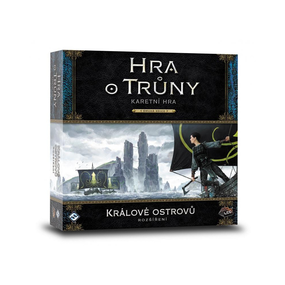 Od nepaměti vládne rod Greyjoyů nad drsnými Železnými ostrovy a železnými nájezdníky považujícími ostrovy za svůj domov. Železní muži tradičně následují staré způsoby - tedy plenění a drancování ostatních království Západozemí. Třebaže Greyjoyové poklekli a přidali se k Sedmi královstvím, je mezi nimi dost takových, kteří touží po návratu starých způsobů a k tomu, aby se ze železných znovu stala hrozba všech moří. Přidej se k rodu Greyjoyů při jejich drancování Západozemí! Hra o trůny: karetní hra je hrou intrik, politiky, zrady a válek pro dva až čtyři hráče na motivy světoznámé ságy George R. R. Martina Píseň ledu a ohně. Králové ostrovů se zaměřují na rod Greyjoyů a přináší nové silné postavy, události, lokace, doplňky a plány k vylepšení balíčků Greyjoyů. Rozšíření také obsahuje nové karty pro každou z herních frakcí, stejně jako rozmanité neutrální karty, které mohou být použity k rozšíření jakéhokoliv balíčku.