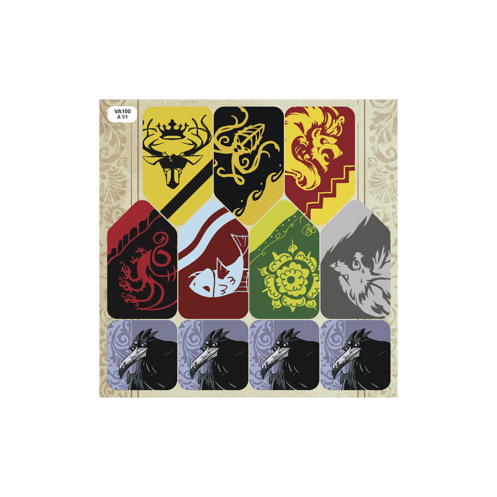 Obsah balení: 35 karet postav, 1 karta Varyse, 14 karet společníků, 7 žetonů praporců, 4 žetony Tříoké vrány, 1 pravidla