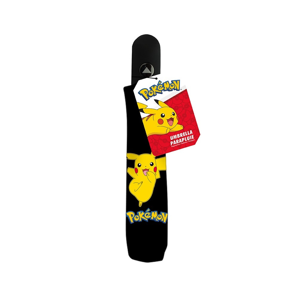 Vystřelovací deštník pro malé i velké trenéry a sběratele Pokémonů zdobí žlutý Pikachu. Deštník má gumovou rukojeť s tlačítkem pro rozevírání. Složený má rozměry 30 x 6 cm, rozevřený pak 96 cm.