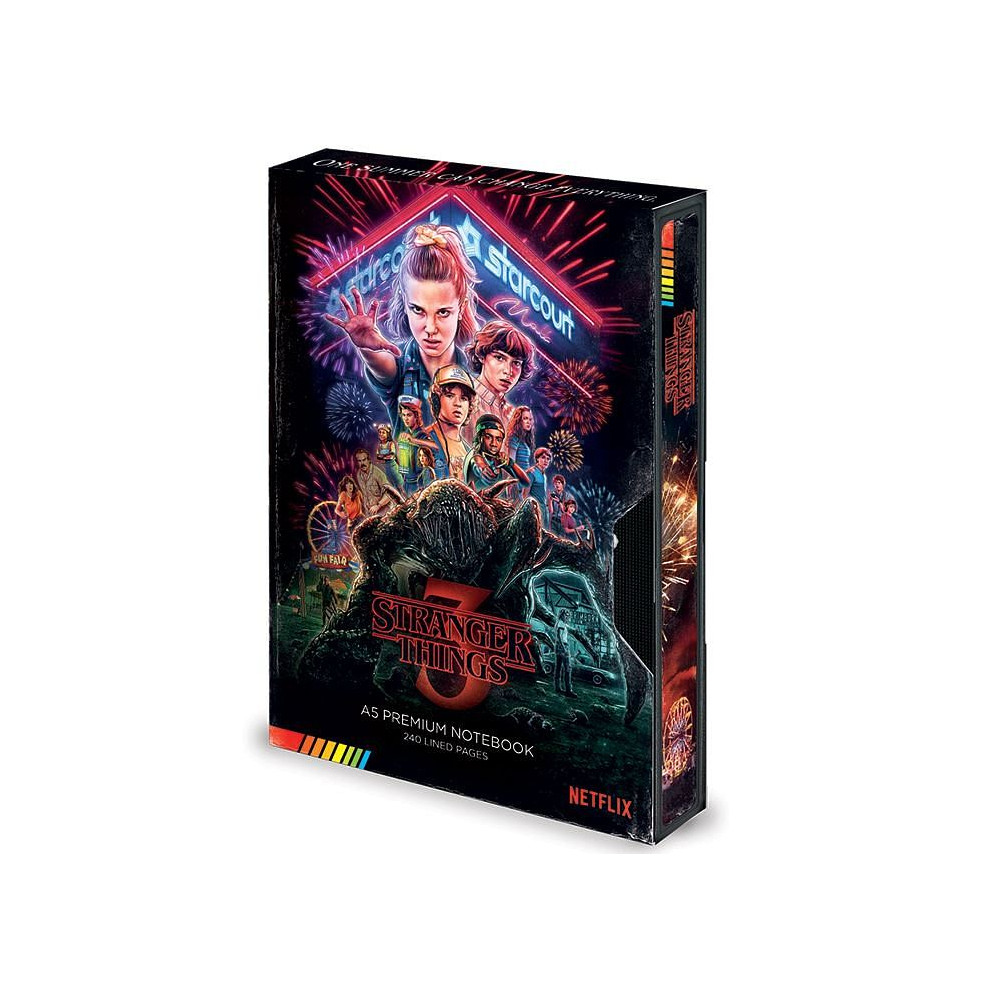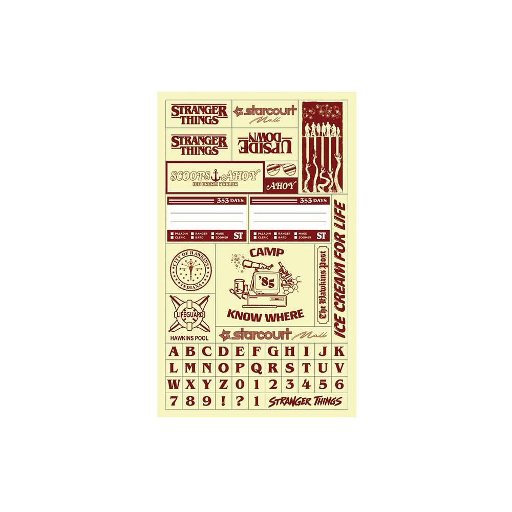 Pro úhledné psaní poslouží linkovaný papír a pro výzdobu stránek se uvnitř skrýva arch samolepek s tématikou Stranger Things.