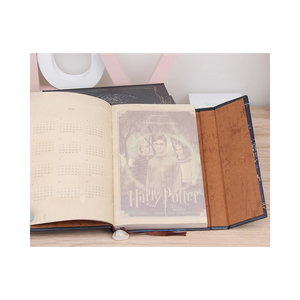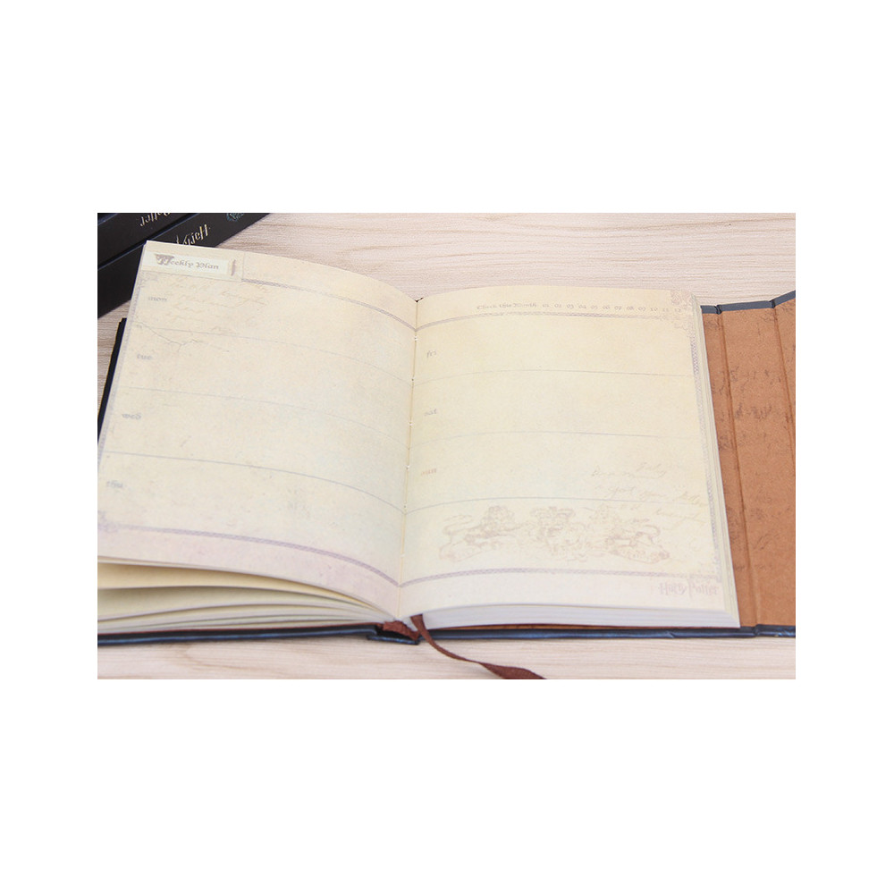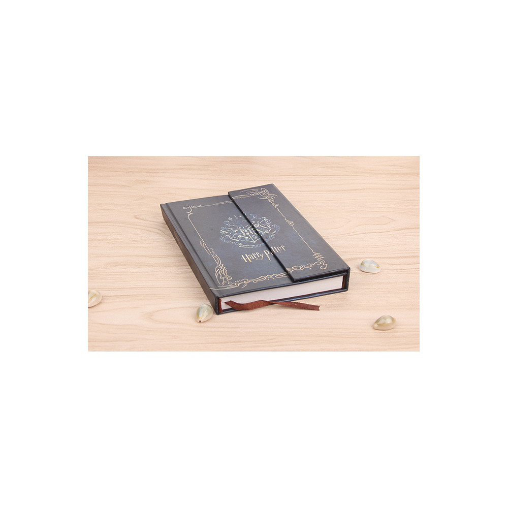 Diář má tvrdé desky s logem Harry Potter a páskem který může sloužit jako záložka. Velikost diáře je formát A5, 21 x 14,5 cm