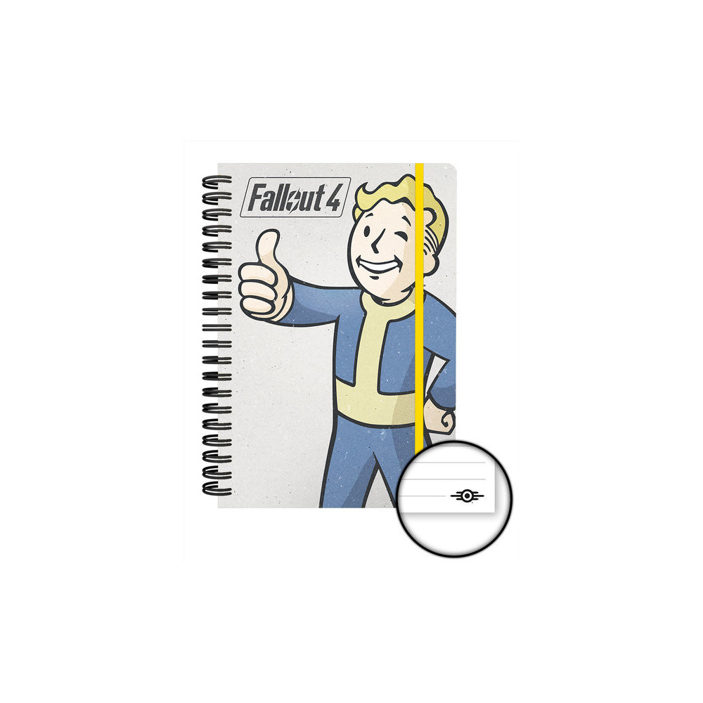 Diář má tvrdé deskyv desingu Fallout - Vault Boy. Diář je v kroužkové vazbě a jeho stránky jsou linkované, v dolním rožku je logo. Celkový počet stránek je 180.