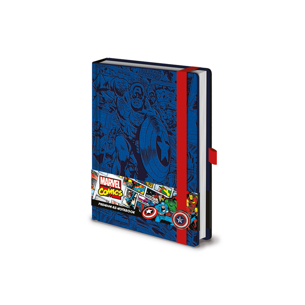 Diář má tvrdé desky s elastickým páskem s logem Kapitána Ameriky, který může sloužit jako záložka, nebo opatření proti otevření bloku. Blok má čisté (nelinkované) stránky a v dolních rozích je logo Kapitán Amerika. Celkový počet stránek je 240 a velikost zápisníku je formát A5, 21 x 14,5 cm