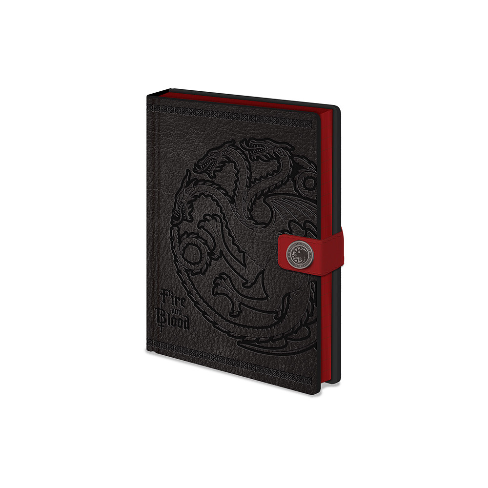 Diář má tvrdé desky se znakem rodu Targaryenů. Diář má linkované stránky s celkovým počtem stránek 240 a o velikosti A5, 21 x 14,5 cm