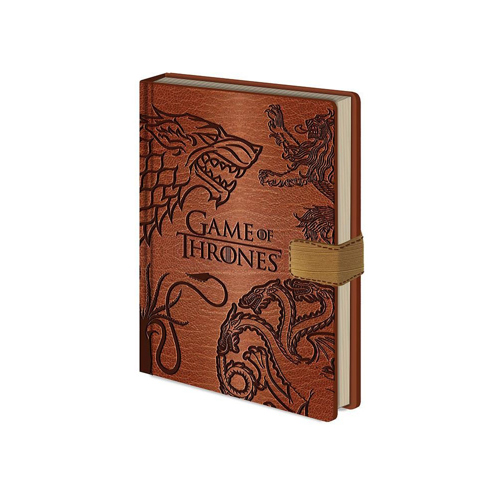 Diář má tvrdé desky na kterých najdeme znak rodů Stark, Targaryen, Lannister. Diář má linkované stránky s celkovým počtem 240 (120 listů). Velikost diáře je formát A5, 21 x 14,5 cm