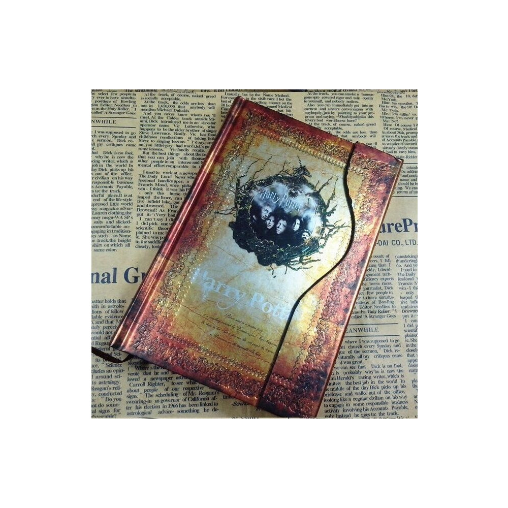 Elegantní diář ve zlaté barvě a s patinovanými listy na motivy filmu Harry Potter. Diář má tvrdé desky s 96 stranami a jeho velikost je 16,5 x 11,5x 2 cm