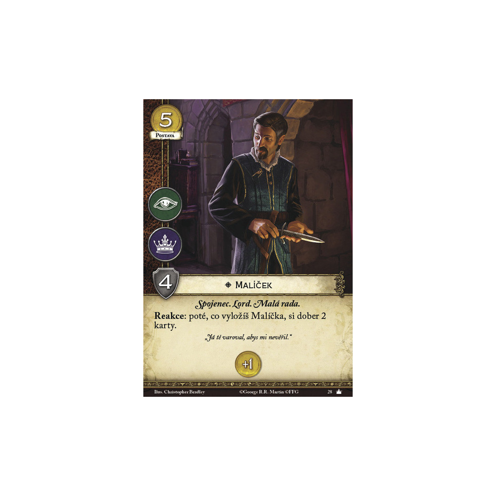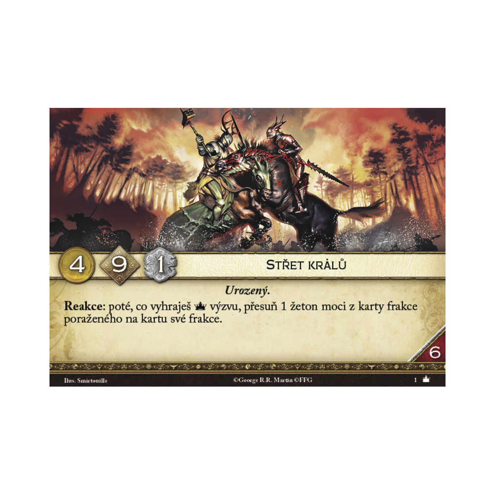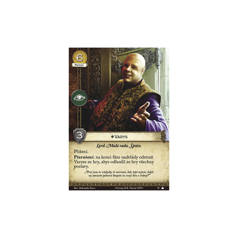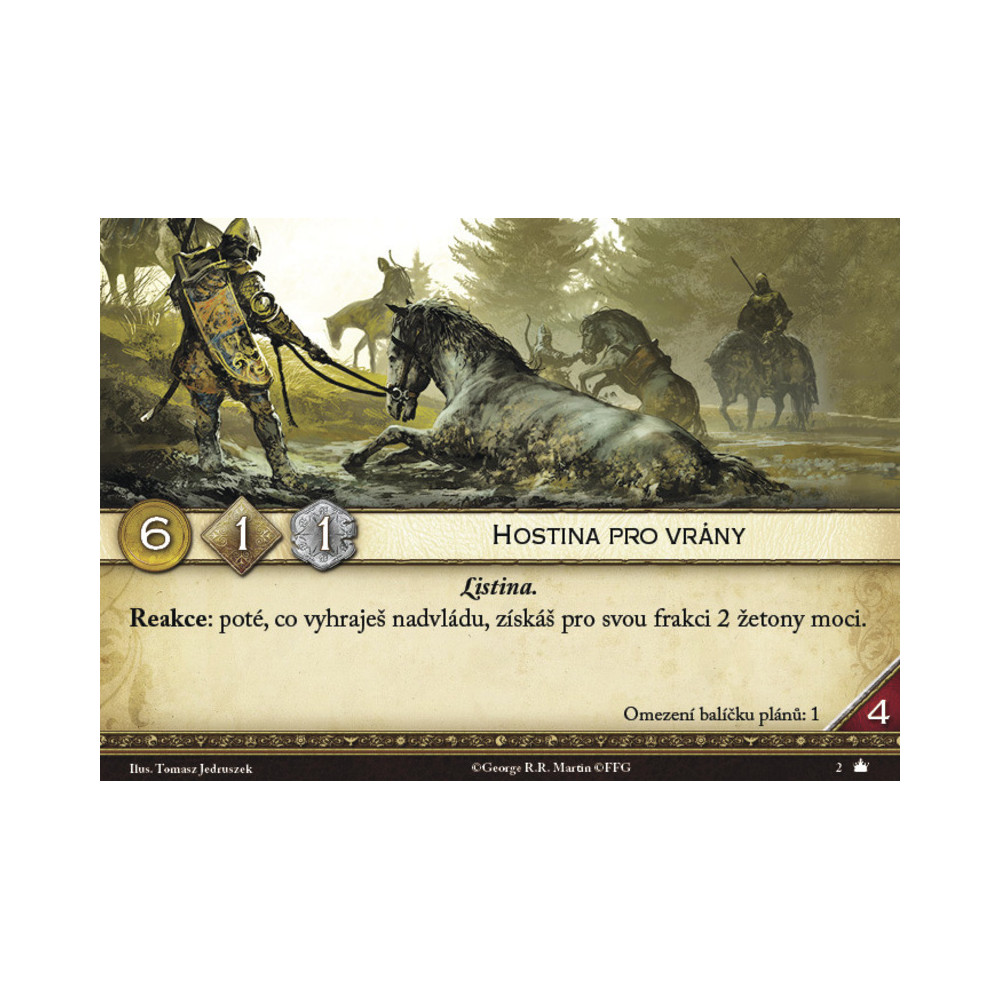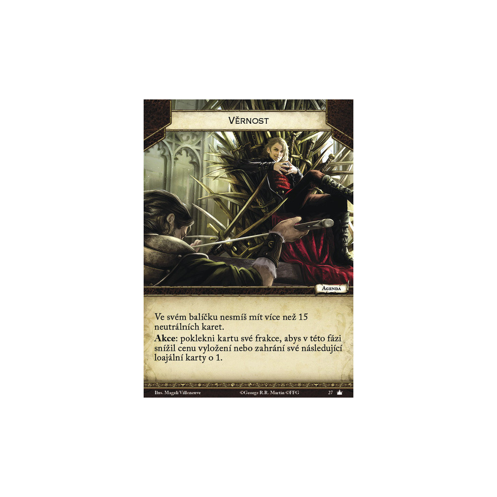 Základní sada druhé edice, která poskytuje svěží začátek pro nové i zkušené hráče.Velké rody Západozemí se střetávají jeden s druhým v hořkém soupeření napříč Sedmi královstvími až za Úzké moře. Spoj své síly s rodem Starků, rodem Targaryenů, rodem Baratheonů, rodem Greyjoyů, rodem Martellů a rodem Tyrellů v jejich snaze o ovládnutí Železného trůnu, anebo oblékni černou a bojuj za Noční hlídku v jejím úsilí ubránit Zeď a chránit svět lidí. Hra o trůny: karetní hra je hrou intrik, politiky, zrady a válek pro dva až čtyři hráče na motivy světoznámé ságy George R. R. Martina Píseň ledu a ohně. Základní sada druhé edice poskytuje svěží začátek a vytříbený herní zážitek pro nové i zkušené hráče a je založena na úspěšných základech původní edice Hry o trůny: karetní hry. Jelikož jde o živou karetní hru, jsou postupně vydávány nové karty, které umožňují hráčům přizpůsobovat obsah základní sady nebo vytvořit vlastní originální balíčky.