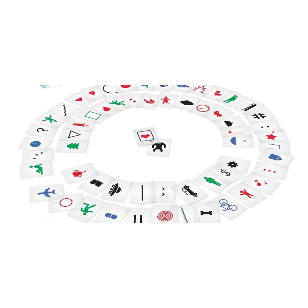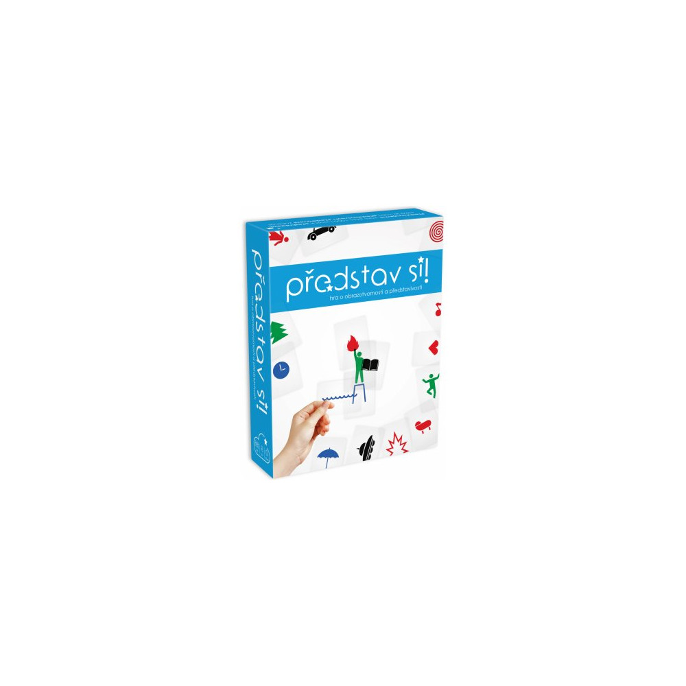 Představ si je party hra, ve které se hráč snaží napovídat výraz z kartičky pomocí průhledných karet s nejrůznějšími symboly a obrázky. Hráč může využít všechny tyto průhledné karty, různě je překrývat a pohybovat s nimi a vytvořit tak i animované dílo. Napovídající i ten kdo uhodne získávají vítězný bod. Hrát můžete určitě i s dětmi, některé výrazy na kartičkách jsou poměrně jednoduché, ale najdete i obtížné kousky, jako jsou třeba různá slovní spojení, historické postavy nebo známá místa světa.