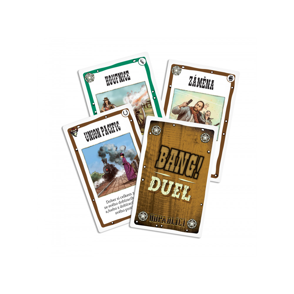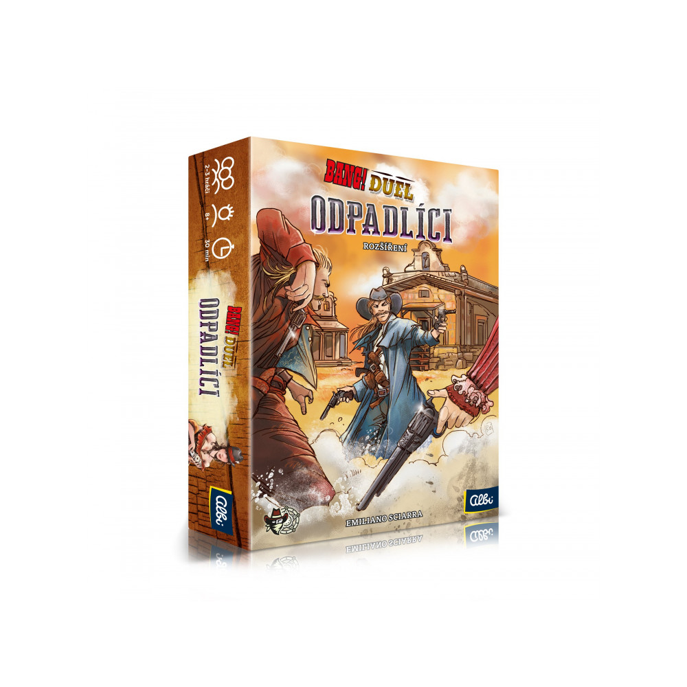 Rozšíření Odpadlíci přidává 4 nové herní možnosti pro karetní hru Bang! Duel. V balení naleznete 40 herních karet, 12 karet postav, 10 žetonů nábojů, žeton aktivní postavy a pravidla.