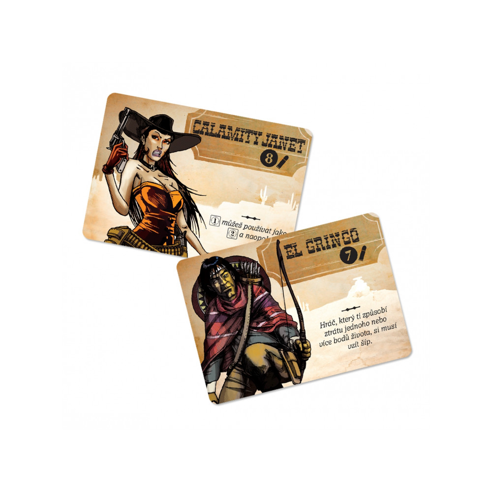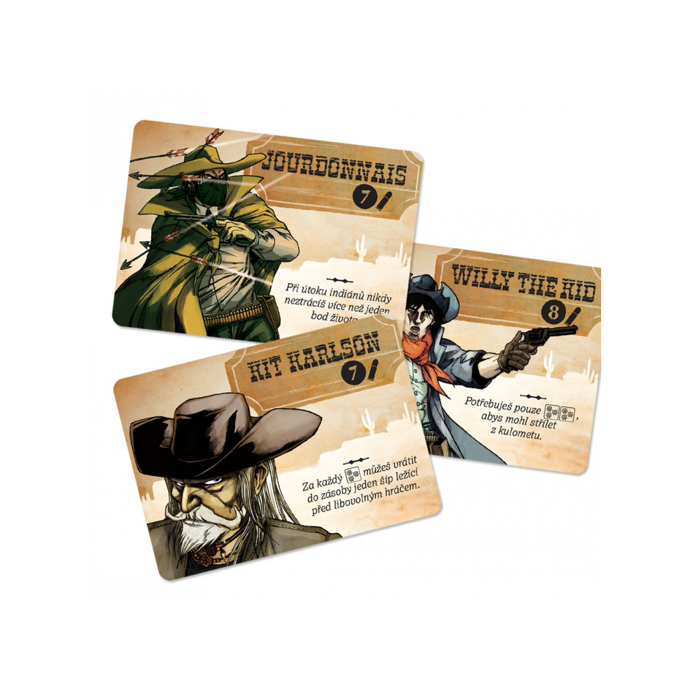 Každý hráč rovněž obdrží kartu postavy, která mu ve hře přiděluje zvláštní schopnosti. Šerif vyloží kartu se svou rolí a jako první zahajuje hru. Během svého tahu může hráč hodit až 3x pěti kostkami, podle výsledků pak může střílet na sousední hráče, zvýšit dosah svých zbraní, vyléčit sobě (nebo někomu jinému) ztracené životy, příp. bere žetony s šípy pokaždé, když mu na kostkách padne jejich symbol. Tyto indiánské žetony (je jich celkem devět) leží ve středu hrací plochy a ve chvíli, kdy si některý z hráčů vezme poslední z nich, zaútočí indiáni - to znamená, že každý hráč přijde o tolik životů, kolik má právě žetonů se symbolem šípu. Následně jsou všechny indiánské žetony opět vráceny do středu hrací plochy.