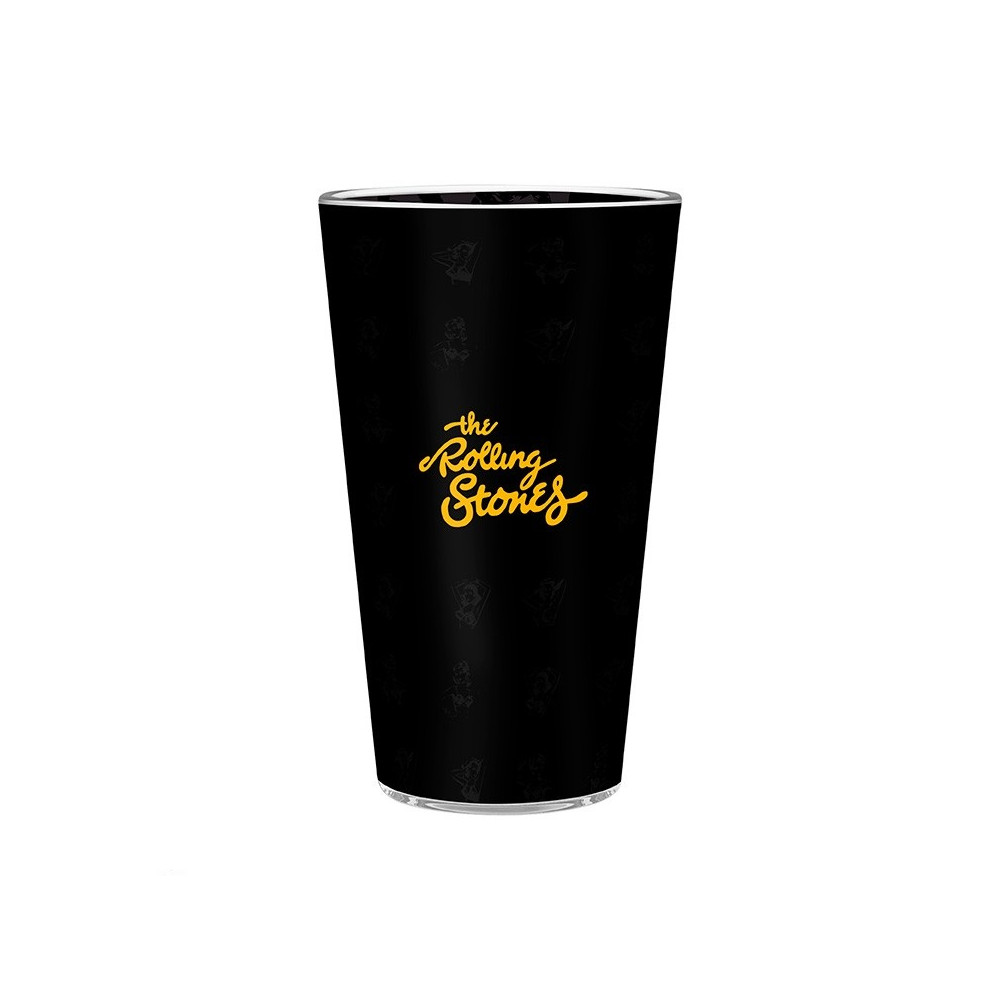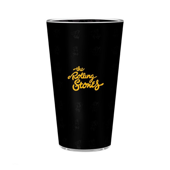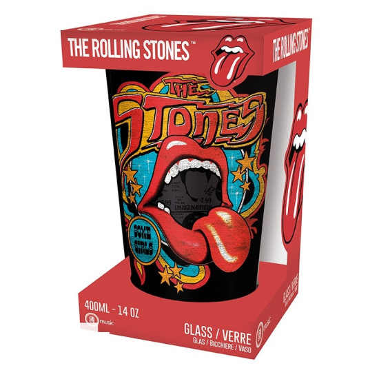 Sklenici dominuje slavné logo s vypláznutým jazykem, doplněné retro typografií a hvězdami v zářivých barvách. Na druhé straně najdete nápis „The Rolling Stones“ ve stylovém zlatém písmu na černém podkladu. Skvělý doplněk pro každého milovníka rockové klasiky.