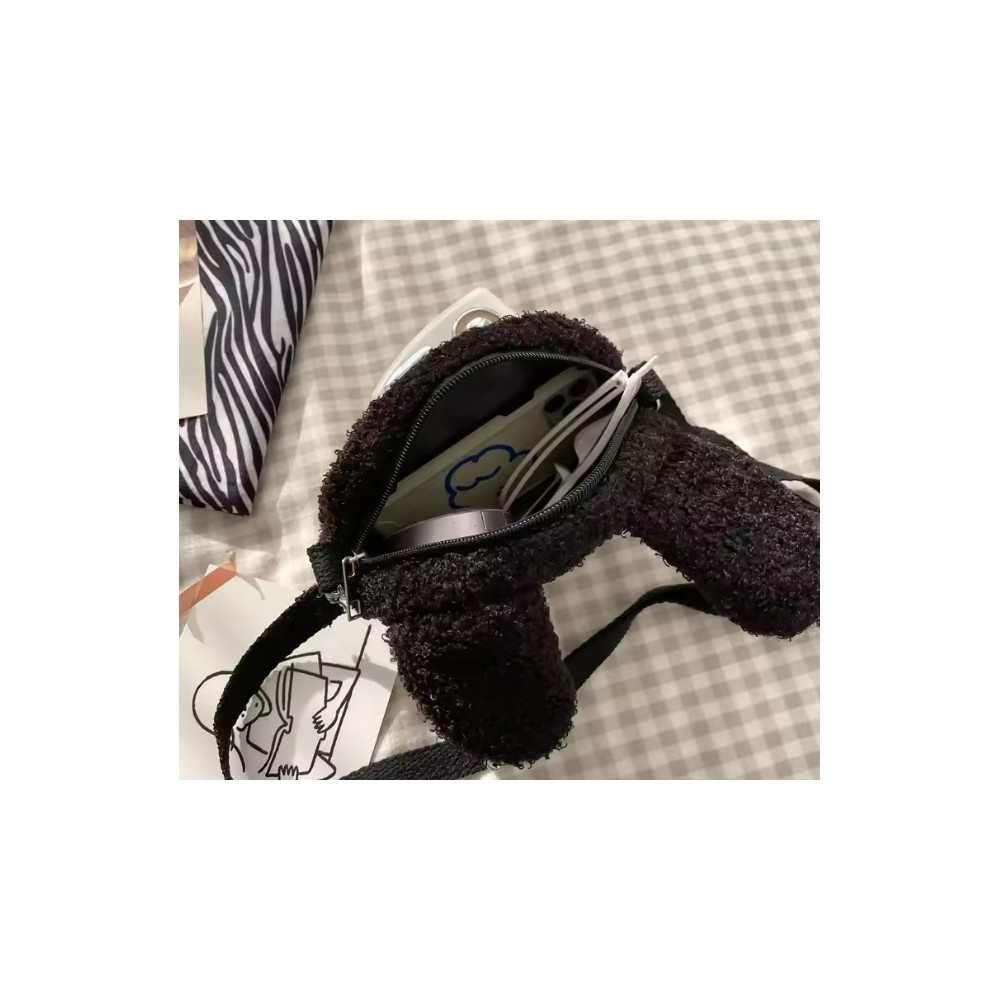 Kabelka je doplněna chlupatým přívěškem Susuwatari, který připomíná známé saze z filmů Můj soused Totoro a Cesta do fantazie. Díky nastavitelnému popruhu ji můžete nosit pohodlně přes rameno nebo jako crossbody tašku. Uvnitř najdete dostatek prostoru na mobil, klíče, peněženku i drobnosti na cesty.