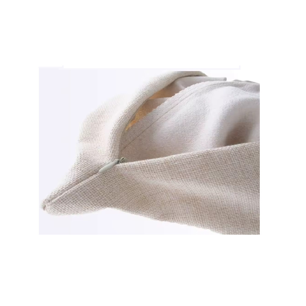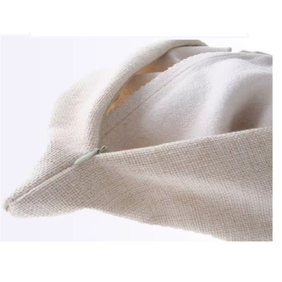 Polštářek je opatřen zipem zespod, který nijak nezasahuje do designu.