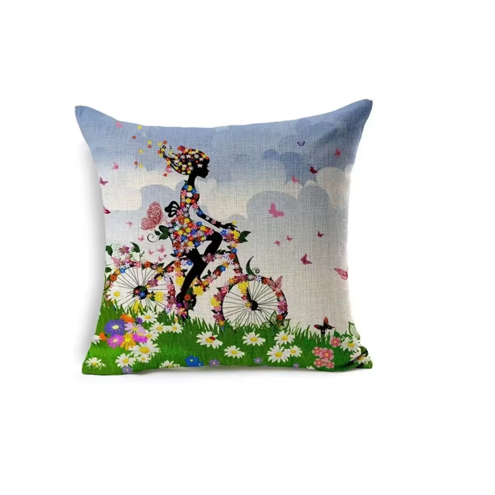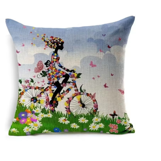 Polštář s Květinovou dámou na kole může krásně obohatit Váš interiér.