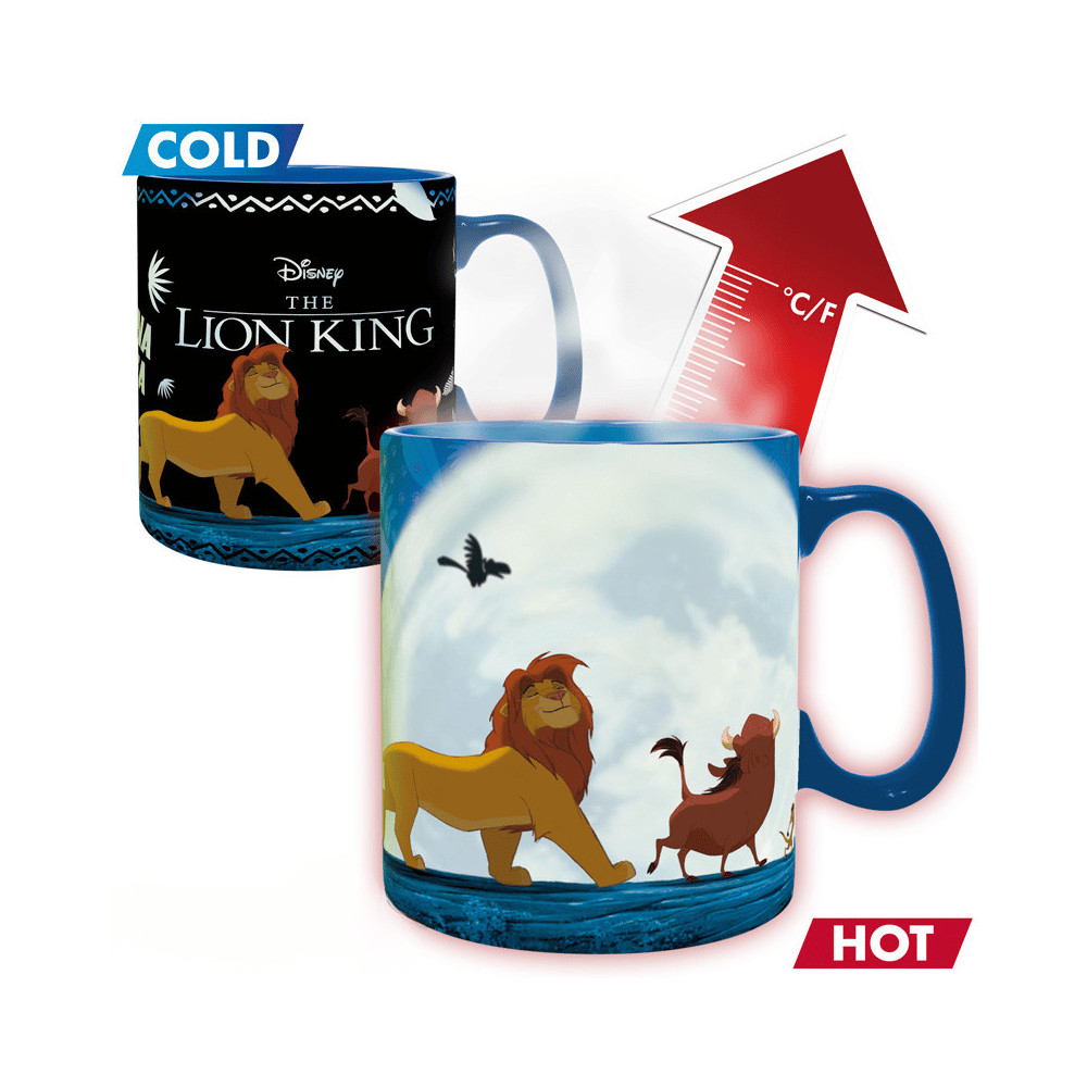 Po nalití horkého nápoje se design hrnku promění a odhalí barevnou scénu se Simbou, Pumbou a Timonem. Tento efekt překvapí děti i dospělé a udělá z každé kávy či čaje zábavný zážitek.