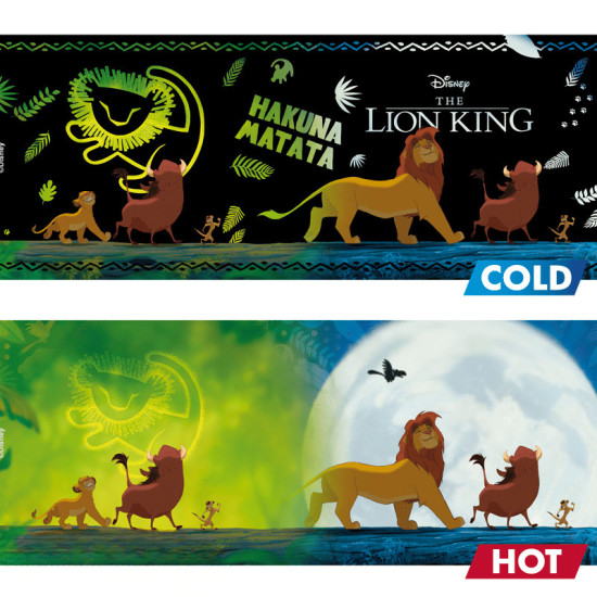 Hrnek Disney Lví král o objemu 460 ml mění po nalití horkého nápoje barvu a odhalí kouzelnou scénu s oblíbenými postavami z pohádky.