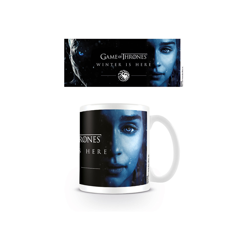 Pro všechny fanoušky Západozemí a dračí královny je tady stylový keramický hrnek s Daenerys Targaryen. Dominantní modročerný design s nápisem „Winter is Here“ zachycuje napětí posledních sérií legendárního seriálu Hra o trůny.
