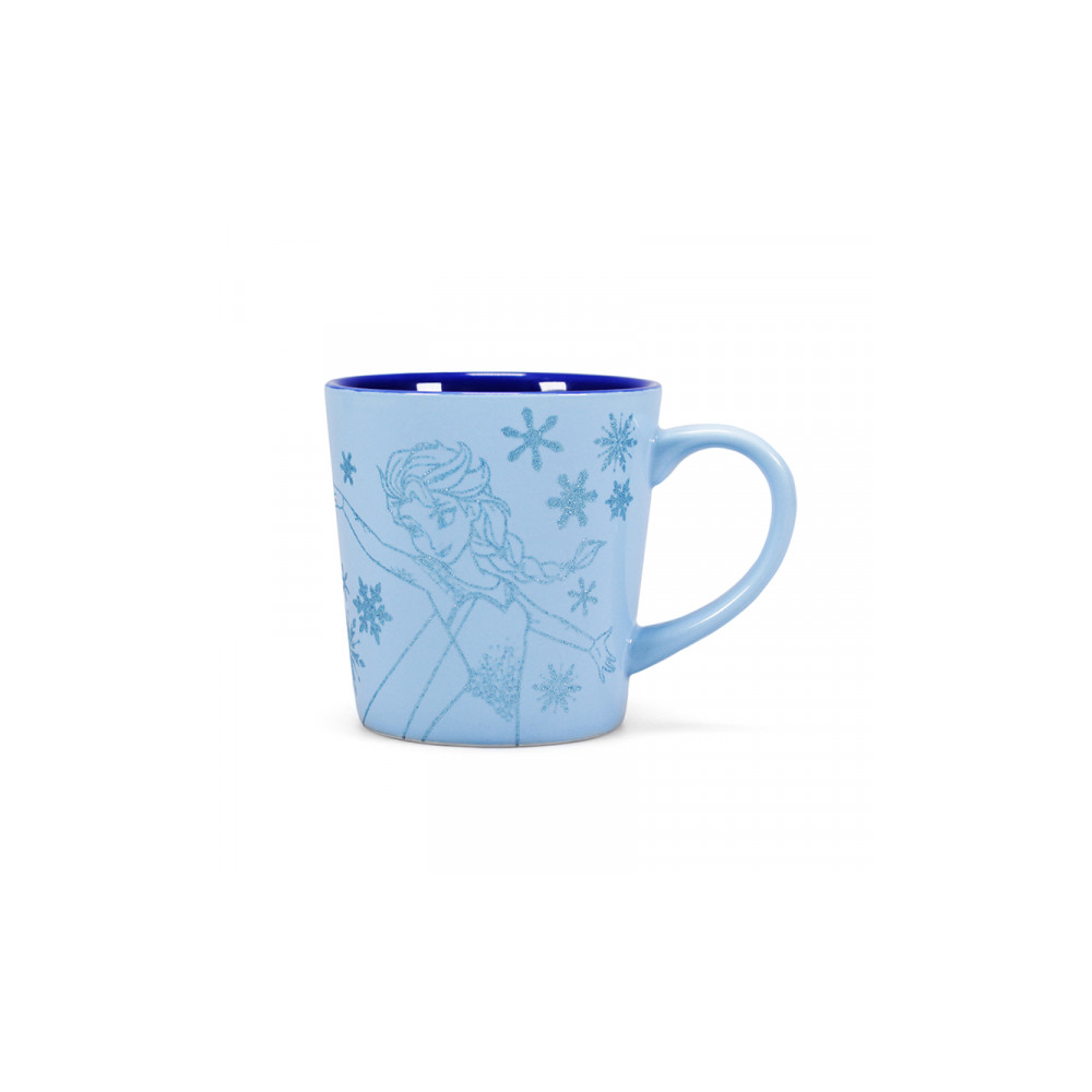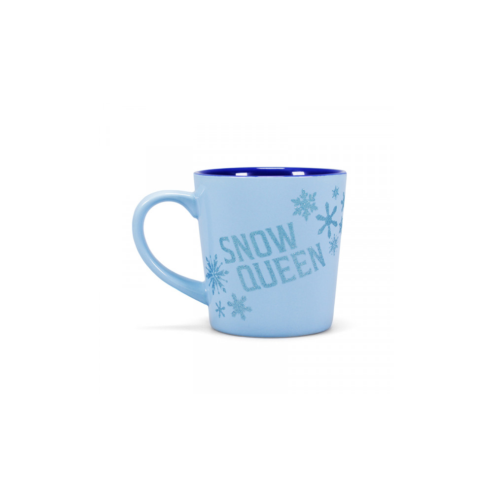 Na zadní straně hrníčku se nachází třpytivý nápis „Sněhová královna"