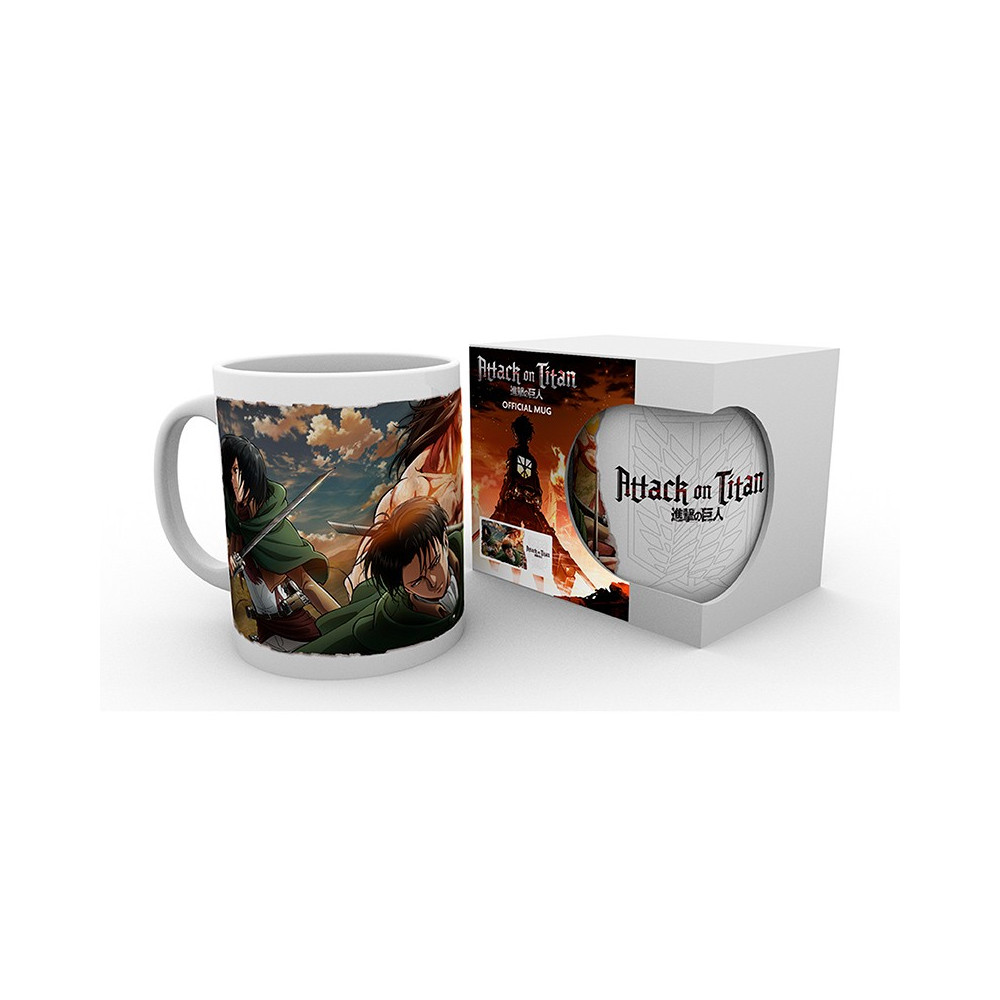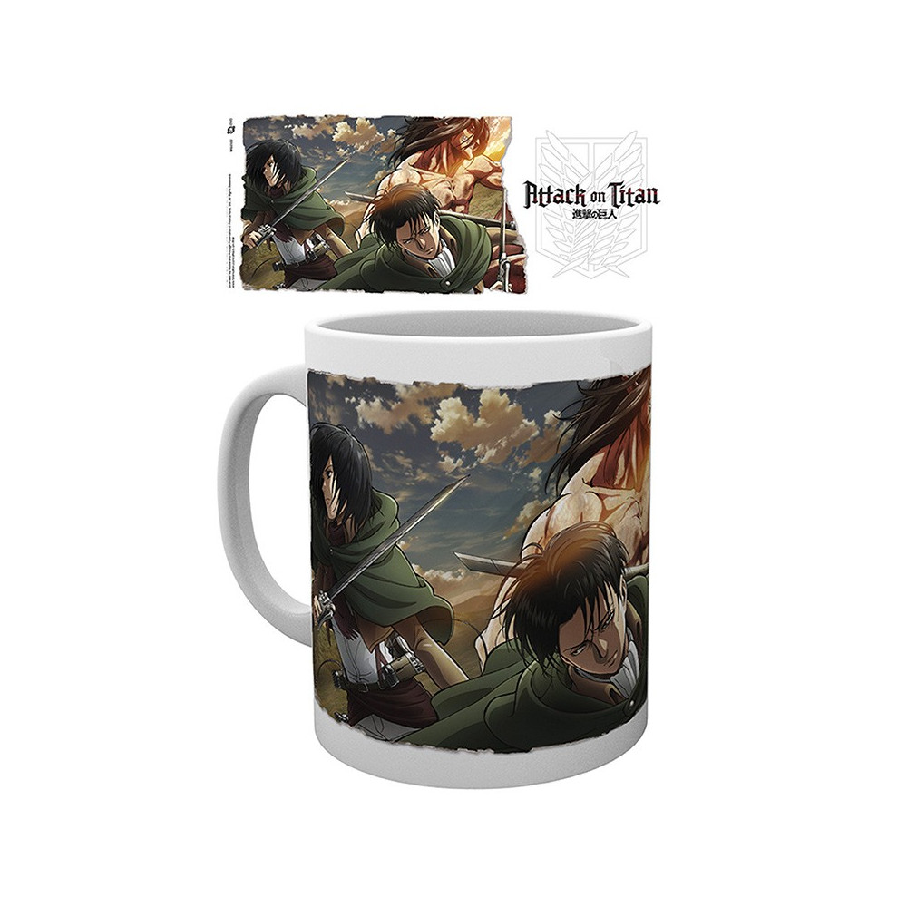 Keramický hrnek Attack on Titan s hlavními hrdiny anime. Objem 330 ml, kvalitní potisk, oficiální licencovaný produkt pro fanoušky.