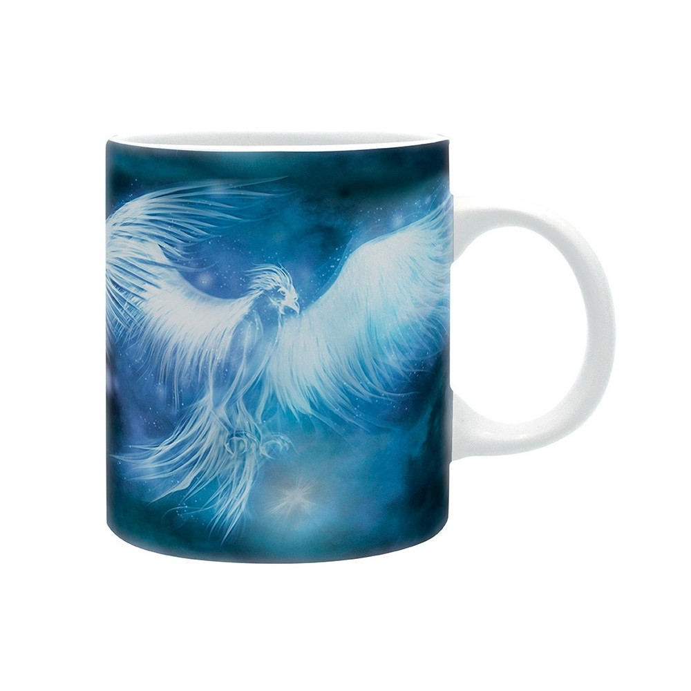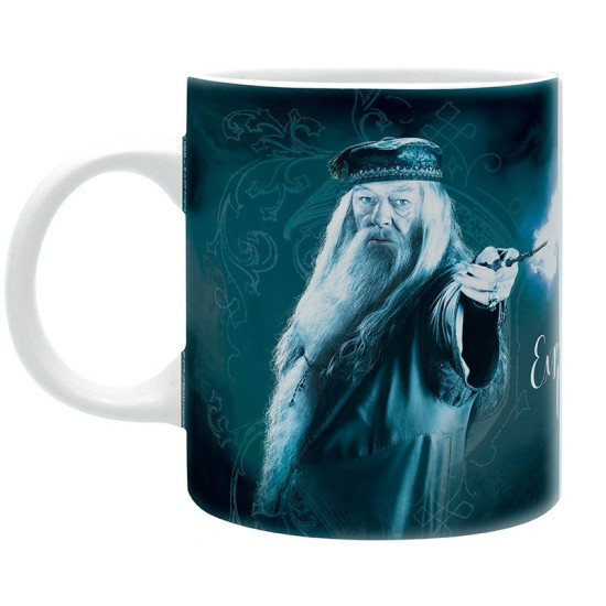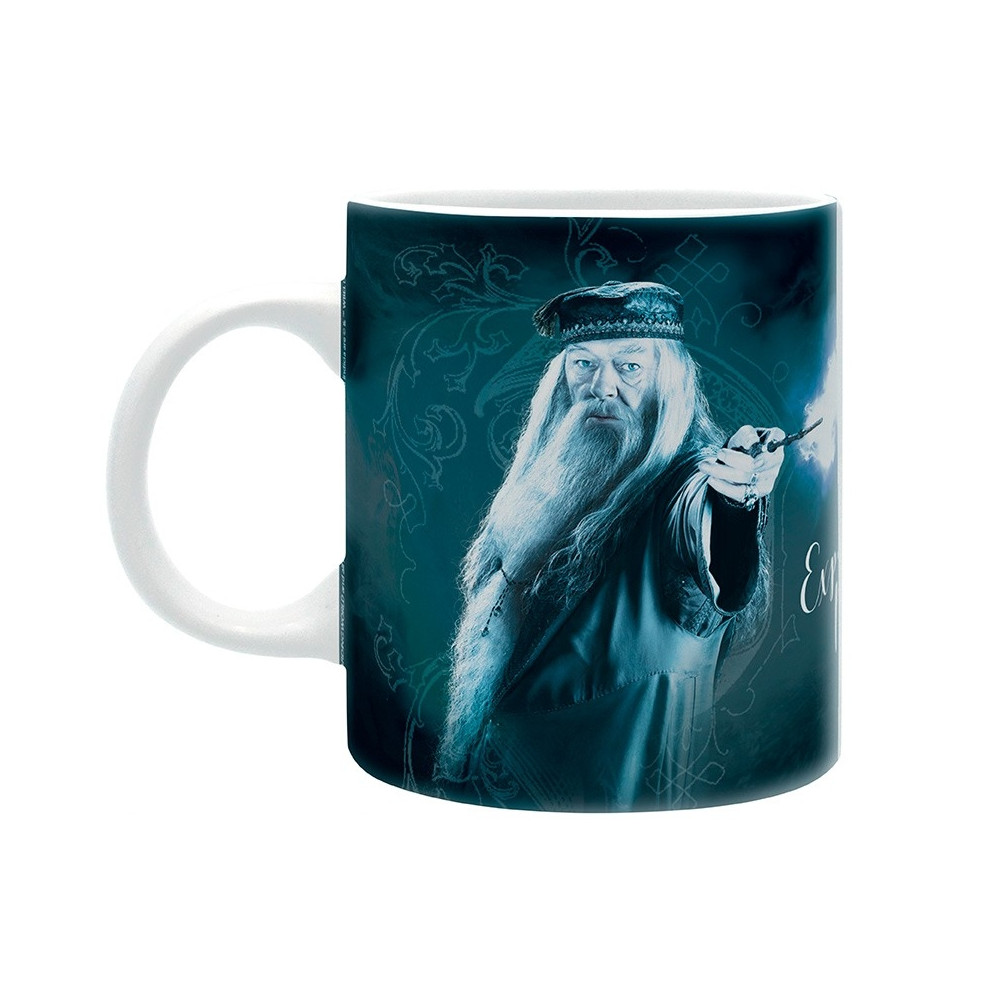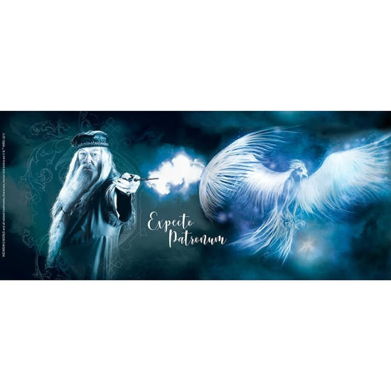 Na temně modrém podkladu září obraz Albuse Brumbála při sesílání kouzla „Expecto Patronum“. Vedle něj se vznáší jeho majestátní patron – fénix. Tento motiv zachycuje klid, sílu i ochranu, které Brumbál představuje. Hrnek je tak dokonalým společníkem pro fanoušky Harryho Pottera všech věkových kategorií.
