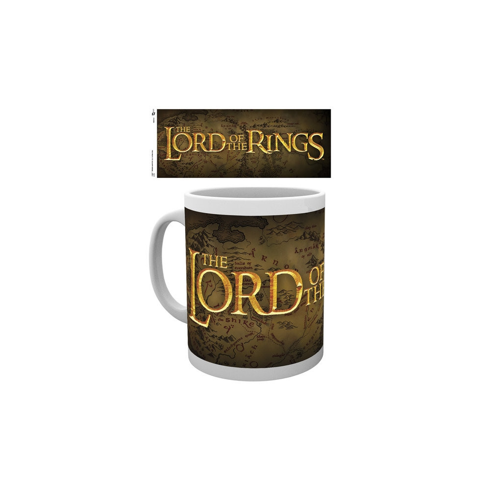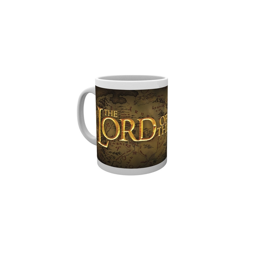 Stylový keramický hrnek s logem Pána prstenů a mapou Středozemě – ideální pro fanoušky fantasy, praktický a dekorativní doplněk.