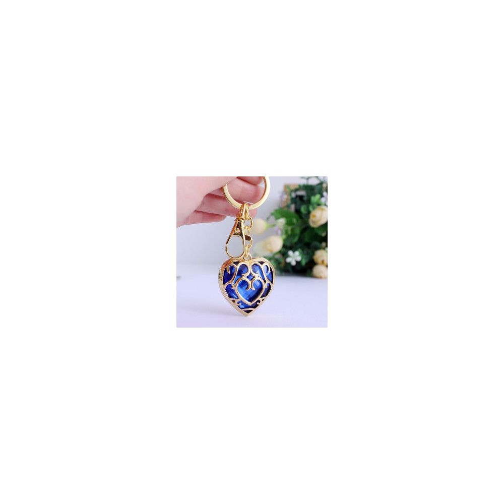 Klíčenka je vyrobena ze slitiny kovu a kombinuje propracovaný design s decentním leskem. Modrý krystal srdce je zasazený do elegantního kovového rámu, což z něj činí perfektní doplněk na klíče, kabelku nebo batoh.