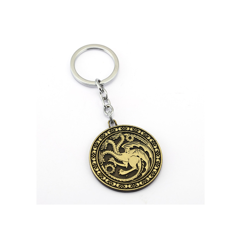 Bronzová klíčenka s erbem Targaryenů – stylový doplněk pro fanoušky Hry o trůny a dědictví dračího rodu.