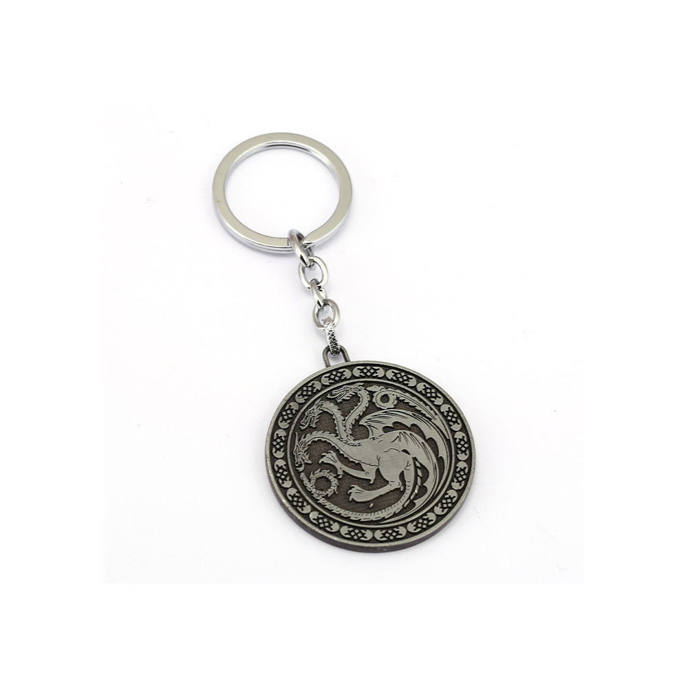 Jsi připraven nosit symbol jednoho z nejmocnějších rodů Westerosu? Klíčenka Game of Thrones (Hra o trůny) - Targaryen mince (stříbrná) spojuje sílu, styl a odkaz dračího rodu v jednom elegantním doplňku.