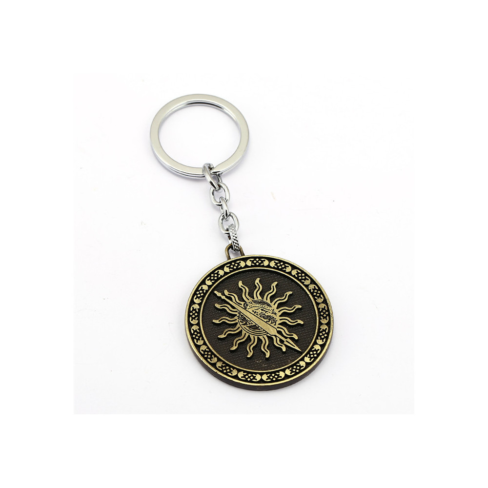 Bronzová klíčenka Tyrell – slunce s kopím jako znak cti a síly, ideální pro fanoušky Hry o trůny a obdivovatele rodu z Highgarden.