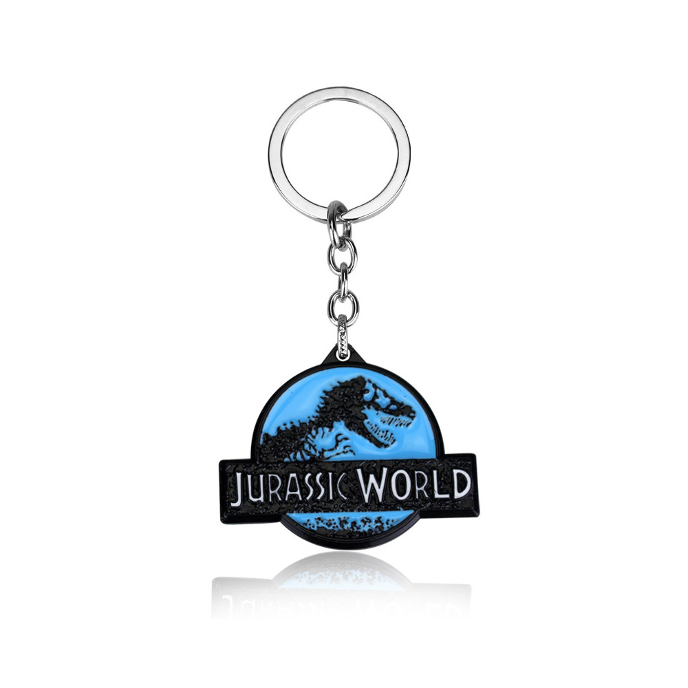 Klíčenka Jurský svět ve čtyřech barvách ze slitiny zinku – ideální doplněk pro fanoušky dinosaurů a filmové série Jurassic Park/World.