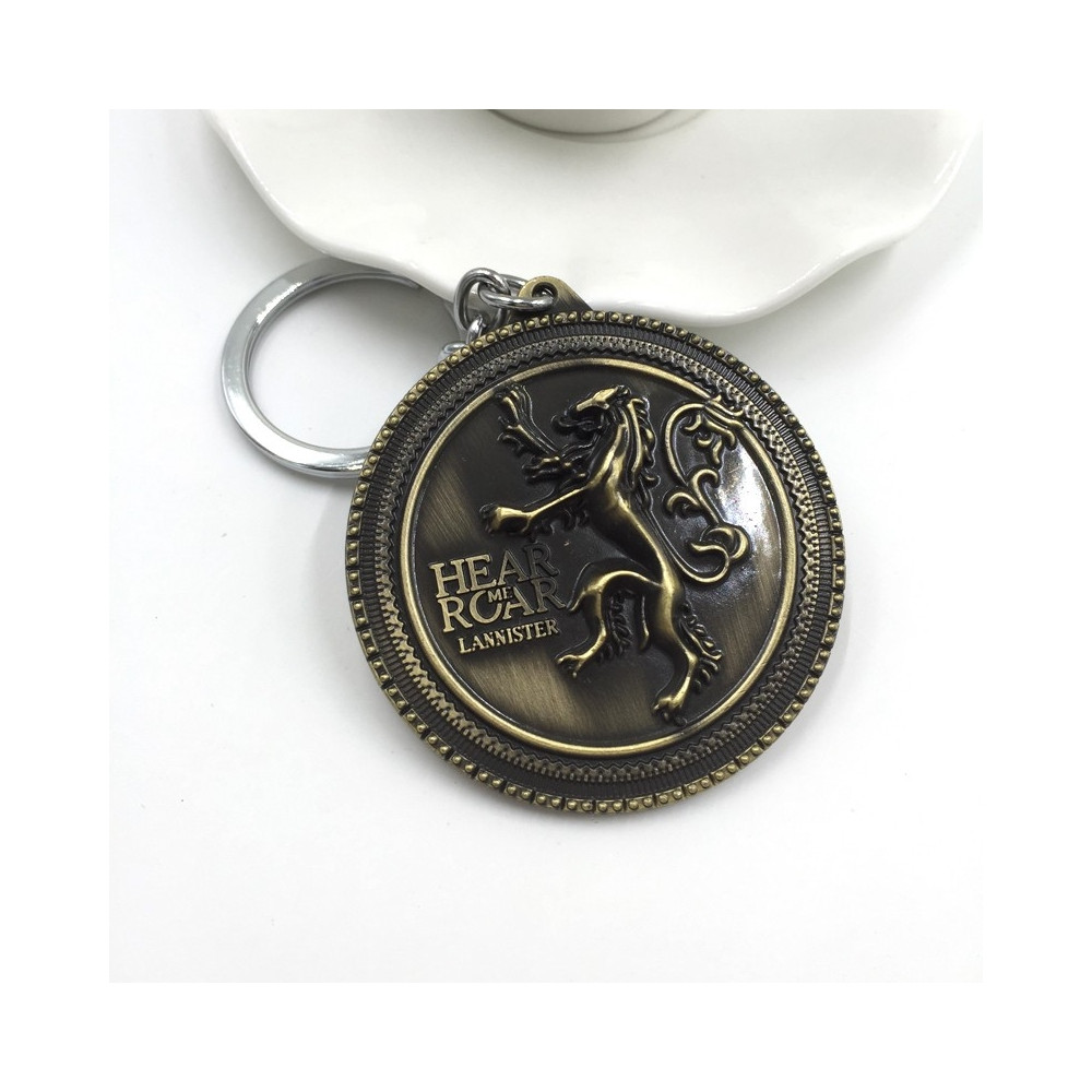 Klíčenka Lannister z Hry o trůny s erbem lva a mottem Hear Me Roarslitina zinku ve dvou barvách, pro fanoušky síly a prestiže.