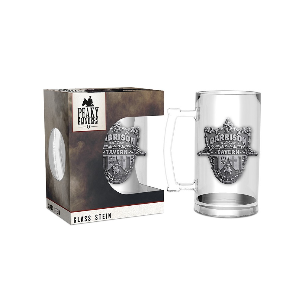 Stylový půllitr Peaky Blinders s kovovým emblémem Garrison Tavern. Objem 0,5 l. Pro fanoušky drsné atmosféry a bratrů Shelbyových.