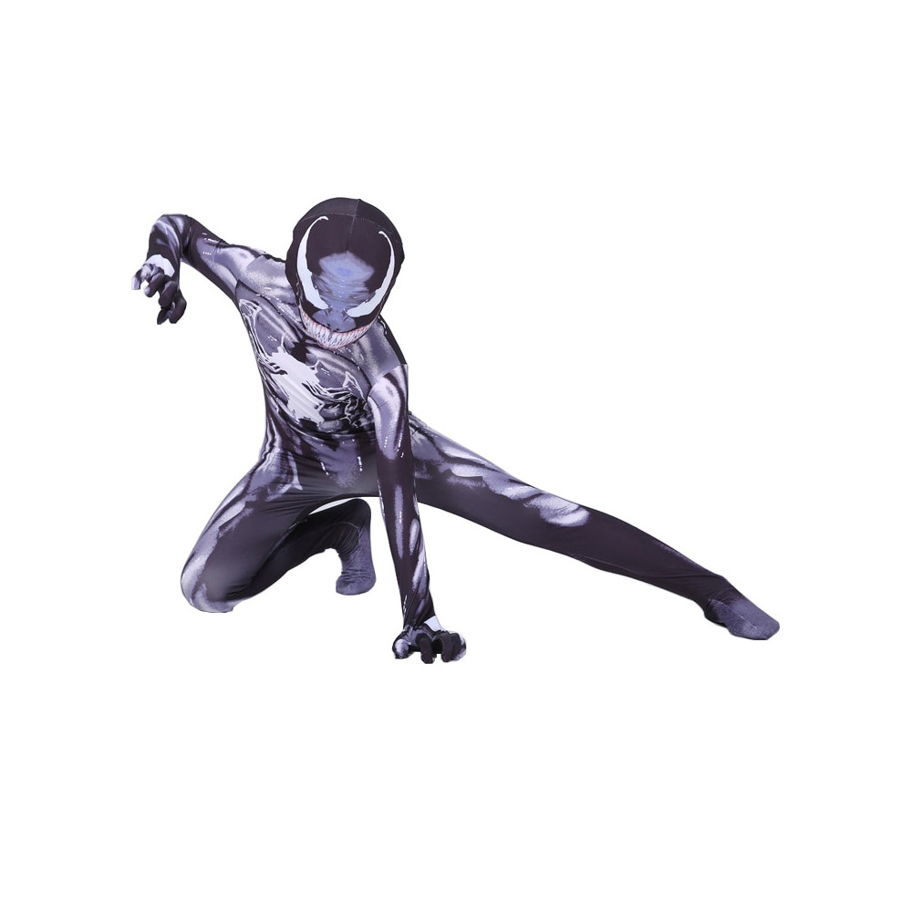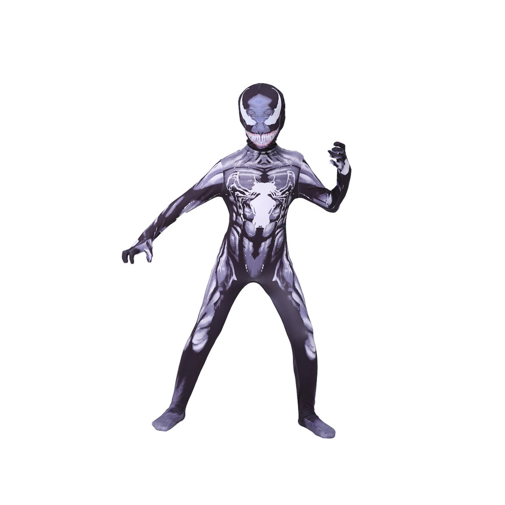 Dětský kostým Venom s realistickým potiskem a elastickou maskou promění vaše dítě v ikonického antihrdinu. Pružný materiál zajistí pohodlí na karneval i hraní.