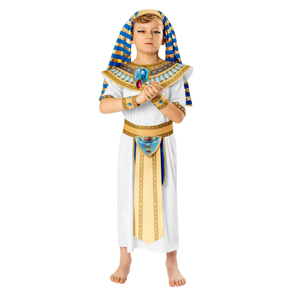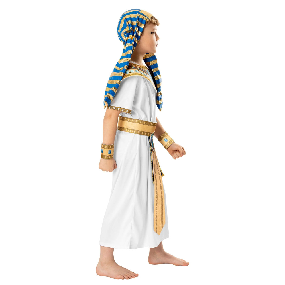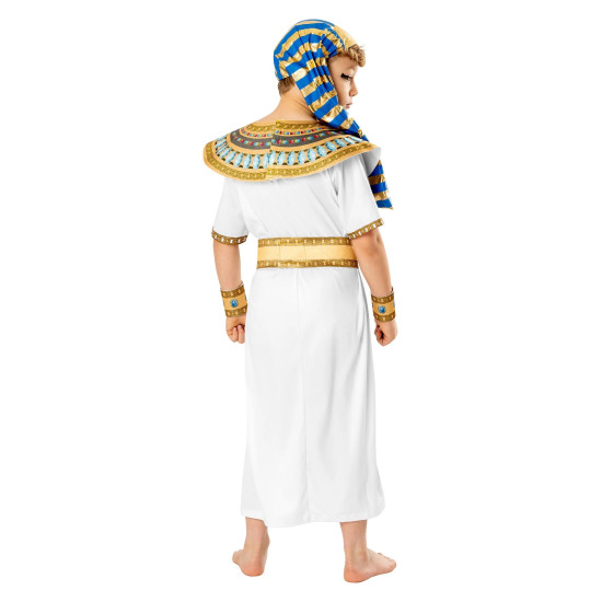 Kostým je inspirován tradičním egyptským oděvem a zaujme bohatě zdobeným límcem, výraznými zlatými detaily a typickou faraonskou pokrývkou hlavy v modro-zlatém provedení. Díky pohodlnému střihu se dítě může volně pohybovat a užít si celý den plný zábavy.