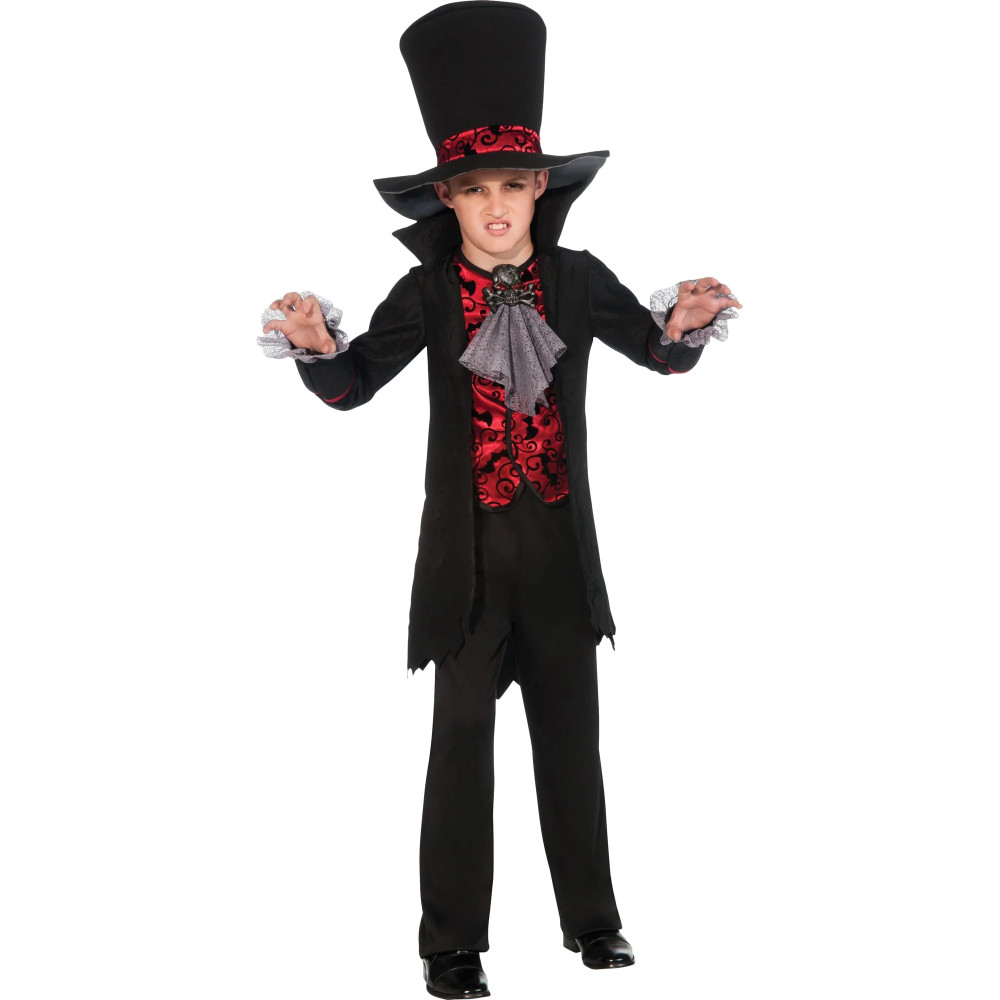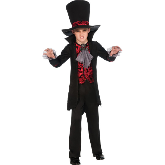 Dětský kostým Upír promění vaše dítě v tajemného vládce noci. Elegantní detaily a stylový klobouk vytvoří dokonalý halloweenský vzhled.