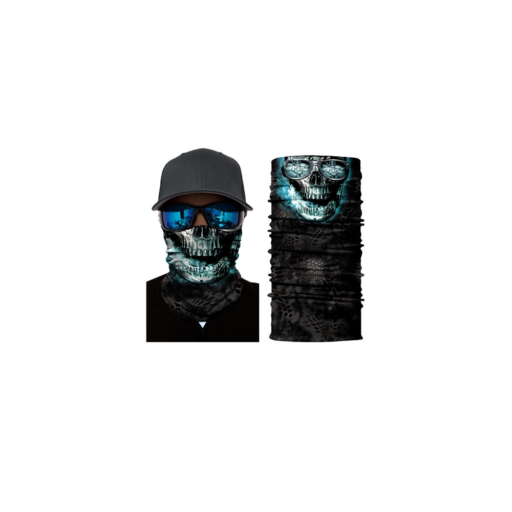Stylový šátek Modrá lebka s futuristickým motivem svítící lebky. Prodyšný materiál a univerzální velikost zajišťují pohodlné nošení. Perfektní pro motorkáře, cosplay, outdoorové aktivity i každodenní styl.