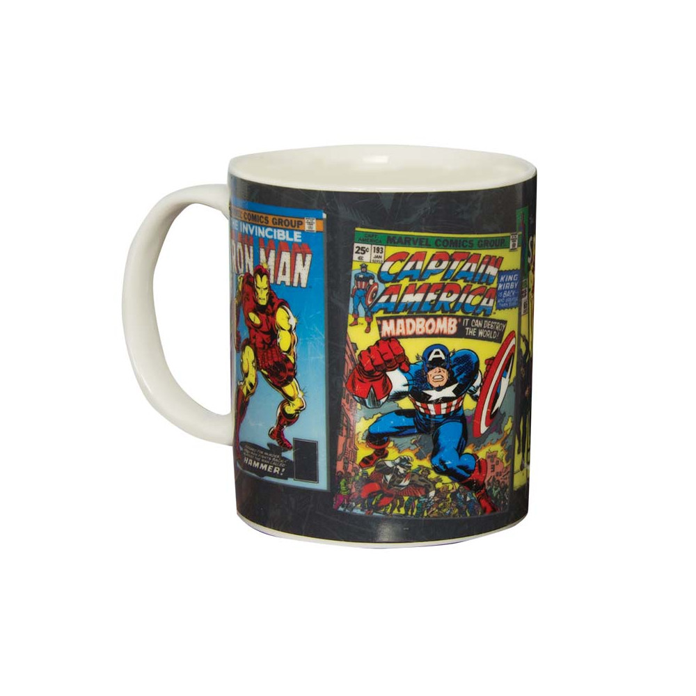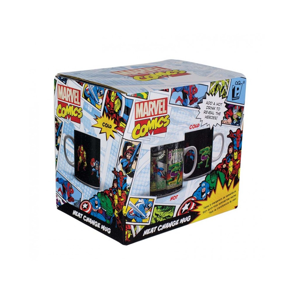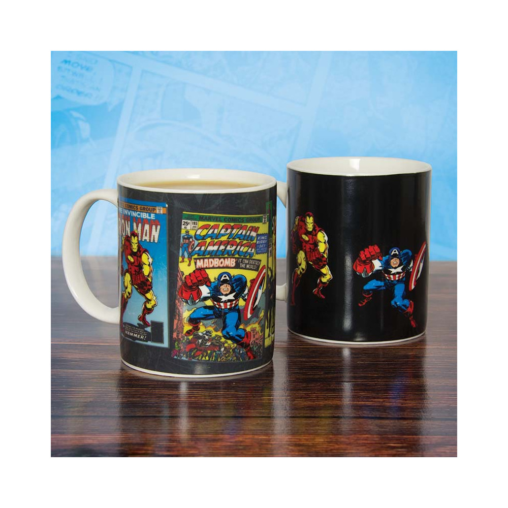 Na studeném hrnku uvidíte ikonické postavy Iron Mana a Captaina Americu. Po zalití horkým nápojem se však objeví komiksové obálky s plnobarevnými motivy inspirované klasikou Marvel Comics – ideální pro každého sběratele i milovníka stylu retro.