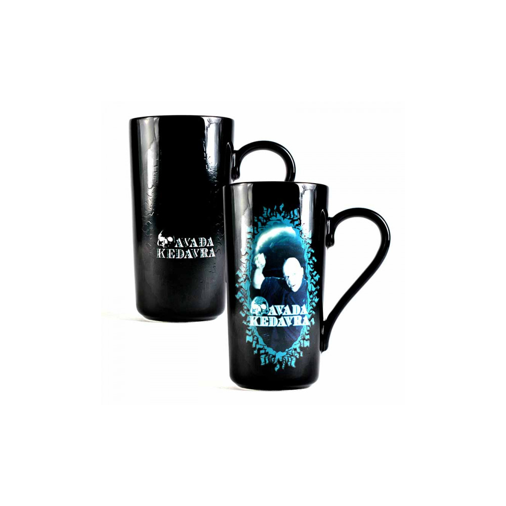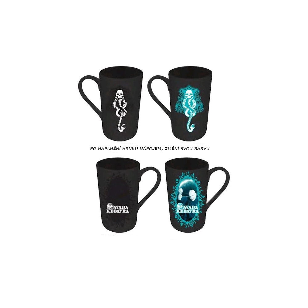 Na první pohled tajemný černý hrnek skrývá temné znamení a nápis Avada Kedavra. Po zalití teplým nápojem se odhalí působivý portrét Lorda Voldemorta v magickém tyrkysovém rámečku. Ideální jako sběratelský kousek nebo originální dárek!