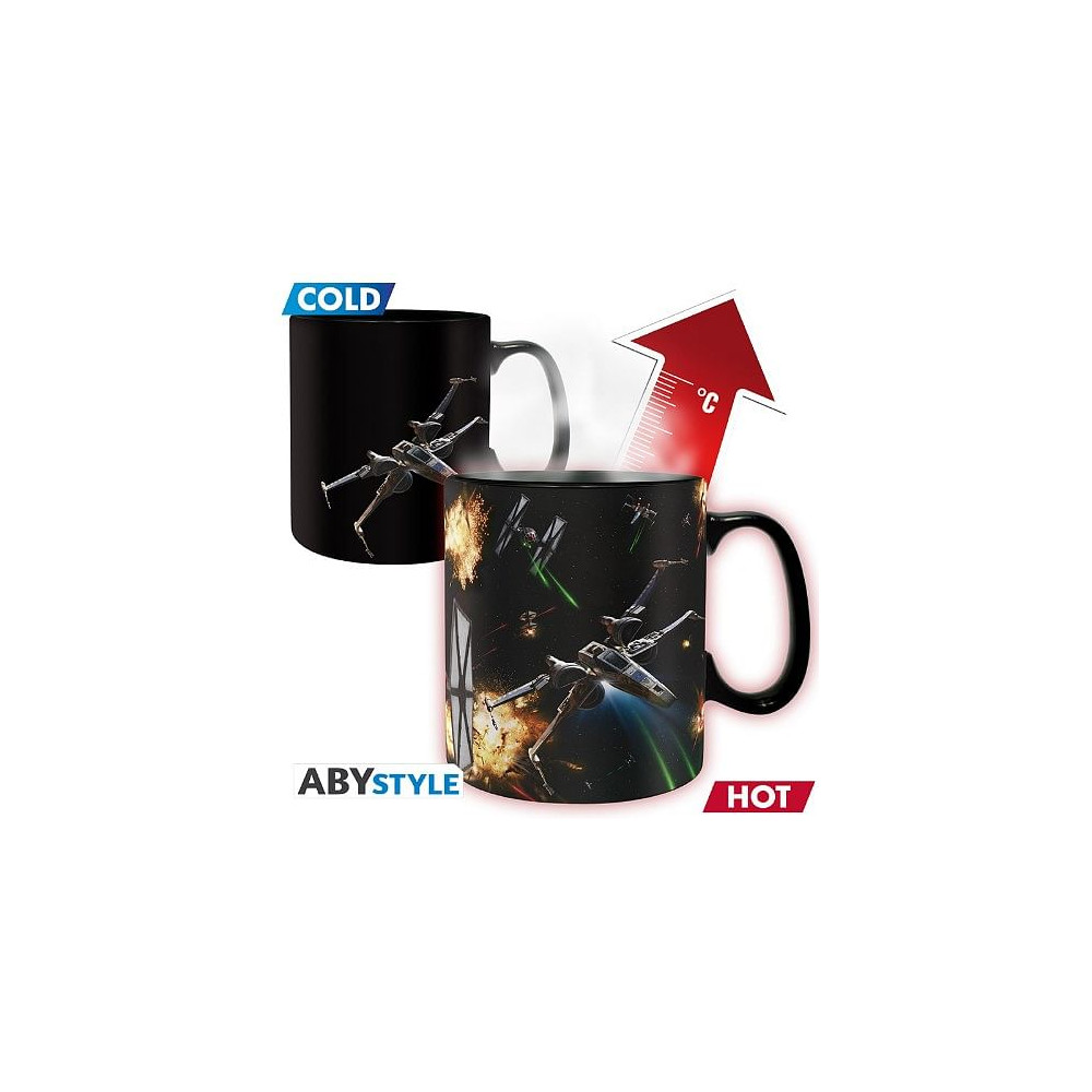V klidném stavu hrnek zobrazuje pouze X-wingy na temném pozadí. Po nalití horké tekutiny však exploduje barvami – objeví se napínavá bitva mezi X-wingy a TIE fightery s výbuchy a laserovými paprsky. Skvělý způsob, jak začít den s pořádnou dávkou akce!