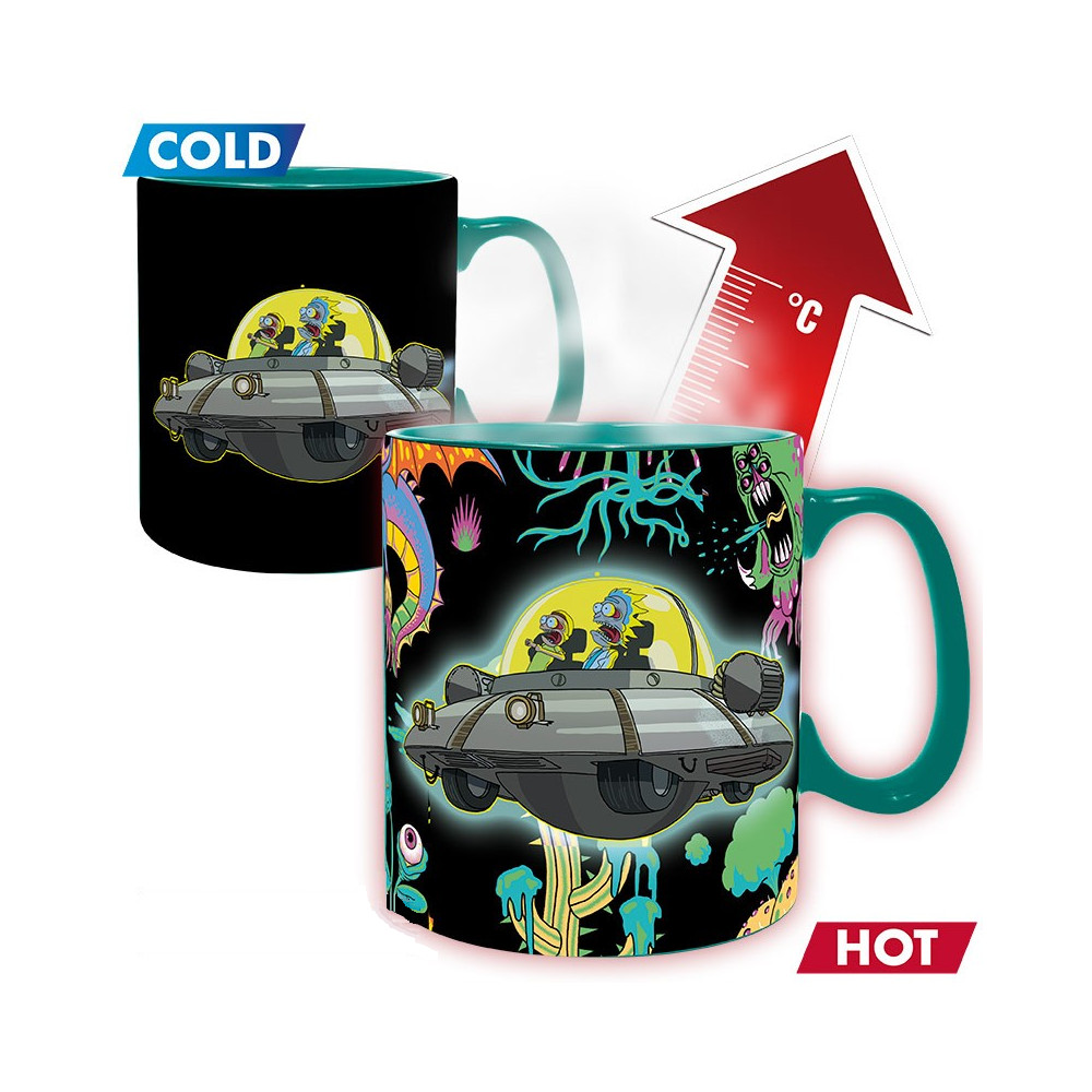 Bláznivý hrnek Rick and Morty s vesmírnou lodí. Mění design při zalití horkým nápojem. Skvělý dárek. Objem 460 ml.