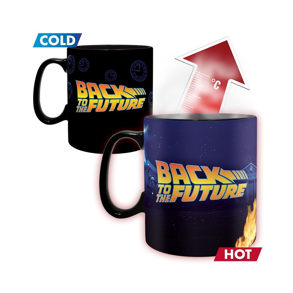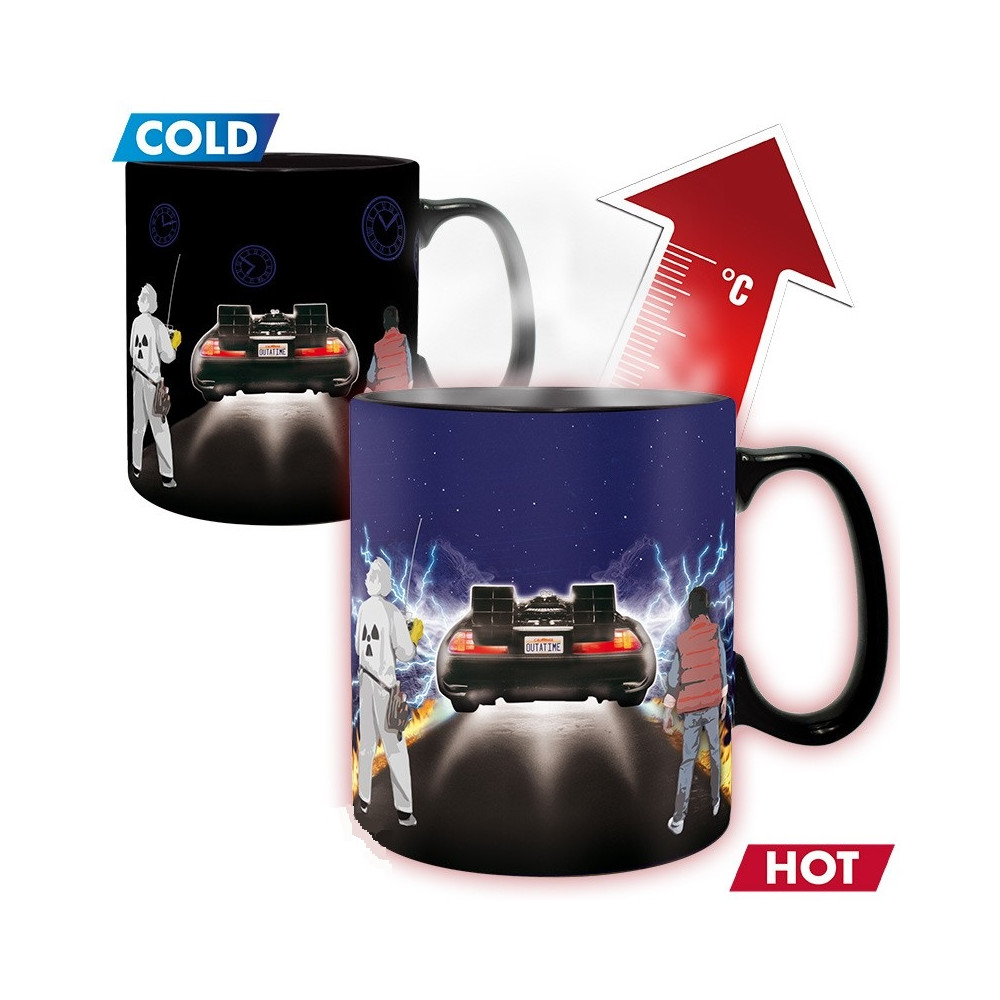 Měnící se hrnek s motivem Návrat do budoucnosti. Po zahřátí odhalí scénu s DeLoreanem a hrdiny. Skvělý dárek. Objem 460 ml.