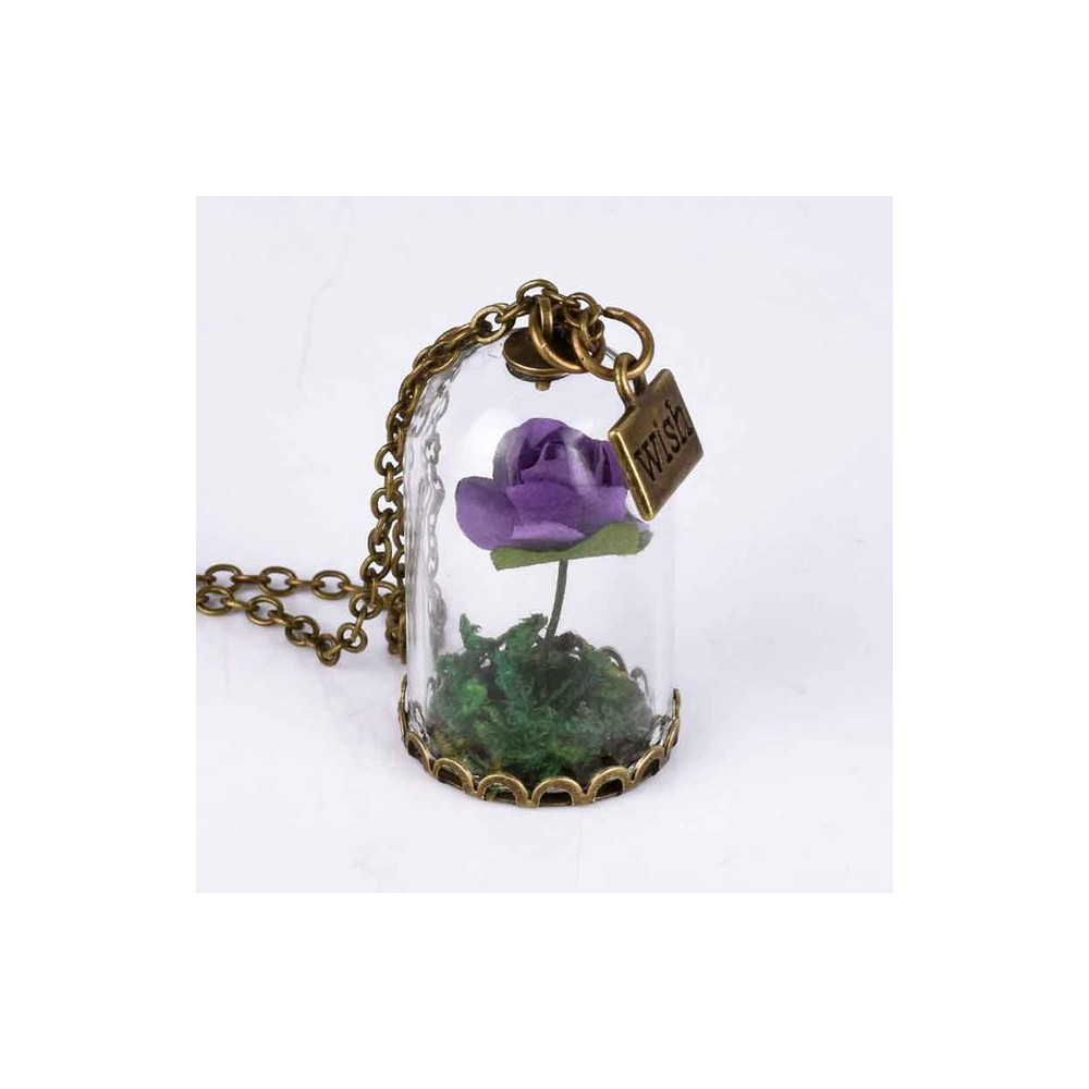 Elegantní řetízek s fialovou růží pod sklem je ideálním dárkem pro ženy, které milují pohádky a romantiku s nádechem vintage stylu.