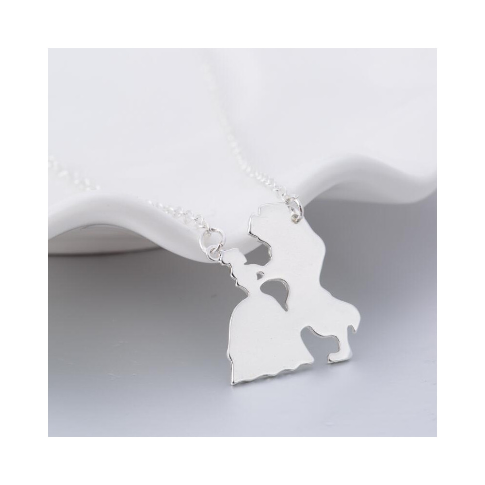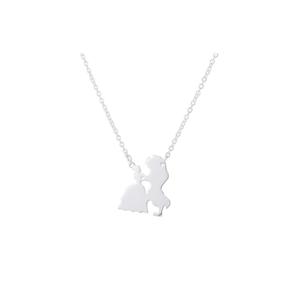 Stříbrný náhrdelník s jemným obrysem páru z pohádky Kráska a zvíře. Stylový doplněk s řetízkem o délce 45 cm, ideální pro romantické duše i milovníky Disney kouzel.