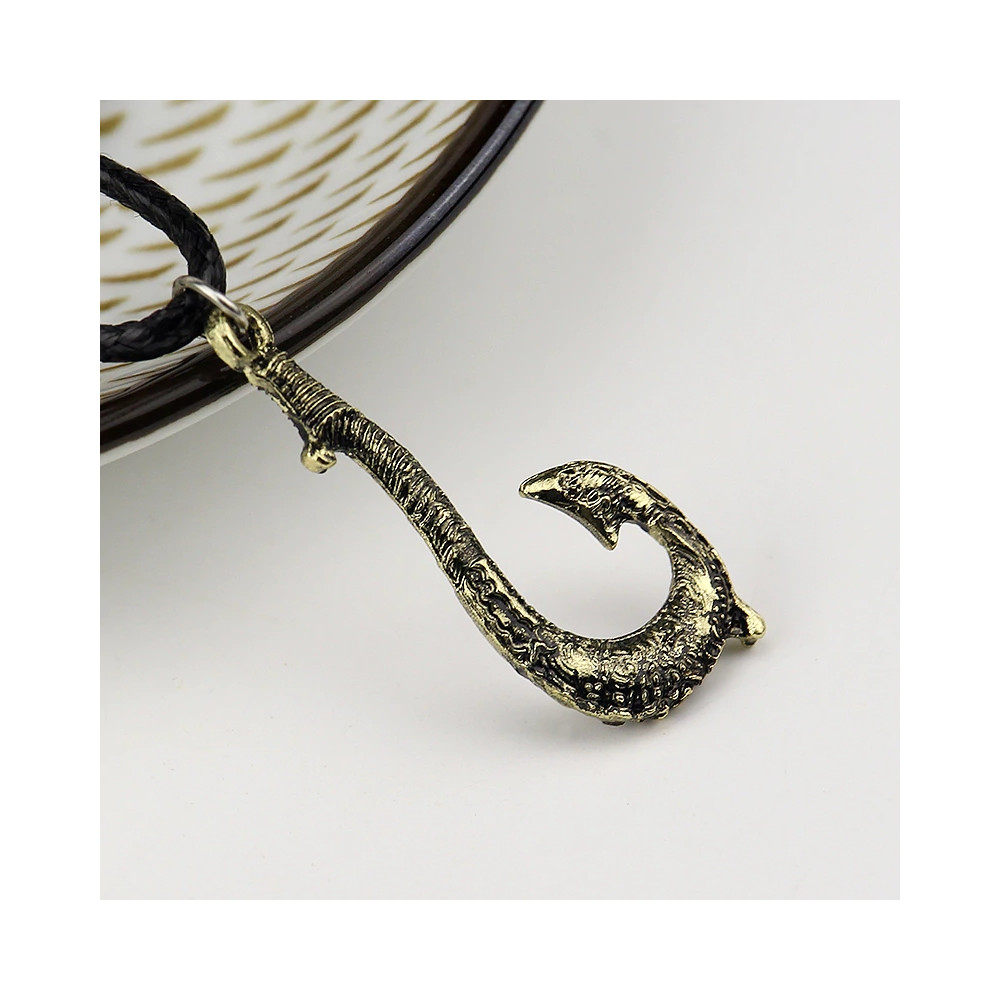 Detailně zpracovaný přívěsek ve tvaru háku představuje legendární zbraň poloboha Mauiho. Je zavěšen na černé šňůrce, což zaručuje pohodlné nošení a autentický vzhled. Zlatá povrchová úprava dodává amuletu výrazný a působivý charakter.