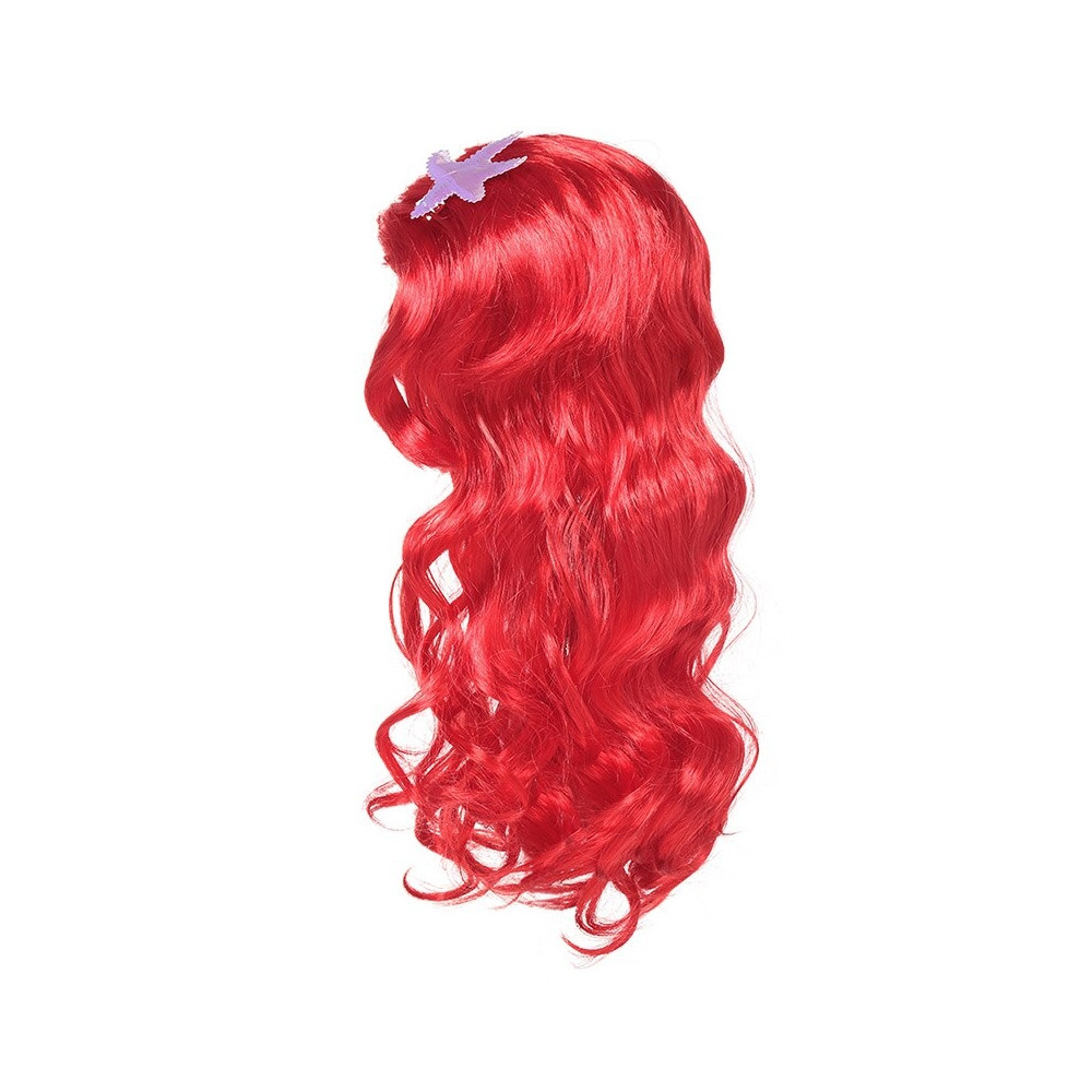 Tato nádherná paruka v sytě červené barvě je inspirovaná vzhledem Ariel z oblíbené pohádky. Vlnité prameny a fialová hvězdice vytvářejí pohádkový efekt, který nadchne každou malou princeznu. Paruka je navržená pro děti ve věku cca 3–6 let a snadno se nasazuje.