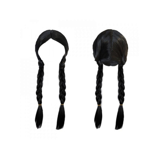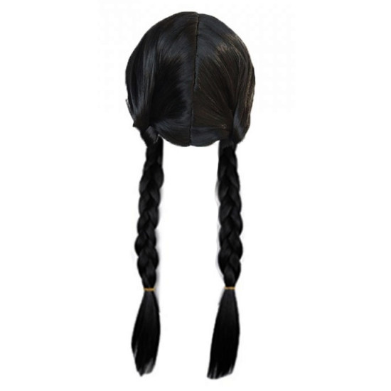 Paruka má dva typické dlouhé černé copy, které přesně vystihují vzhled Wednesday Addams. Je navržena pro děti a výborně se hodí k černým šatům či kostýmu ve stylu Addams Family. Pohodlné nošení zajistí lehká konstrukce vhodná pro celodenní zábavu.